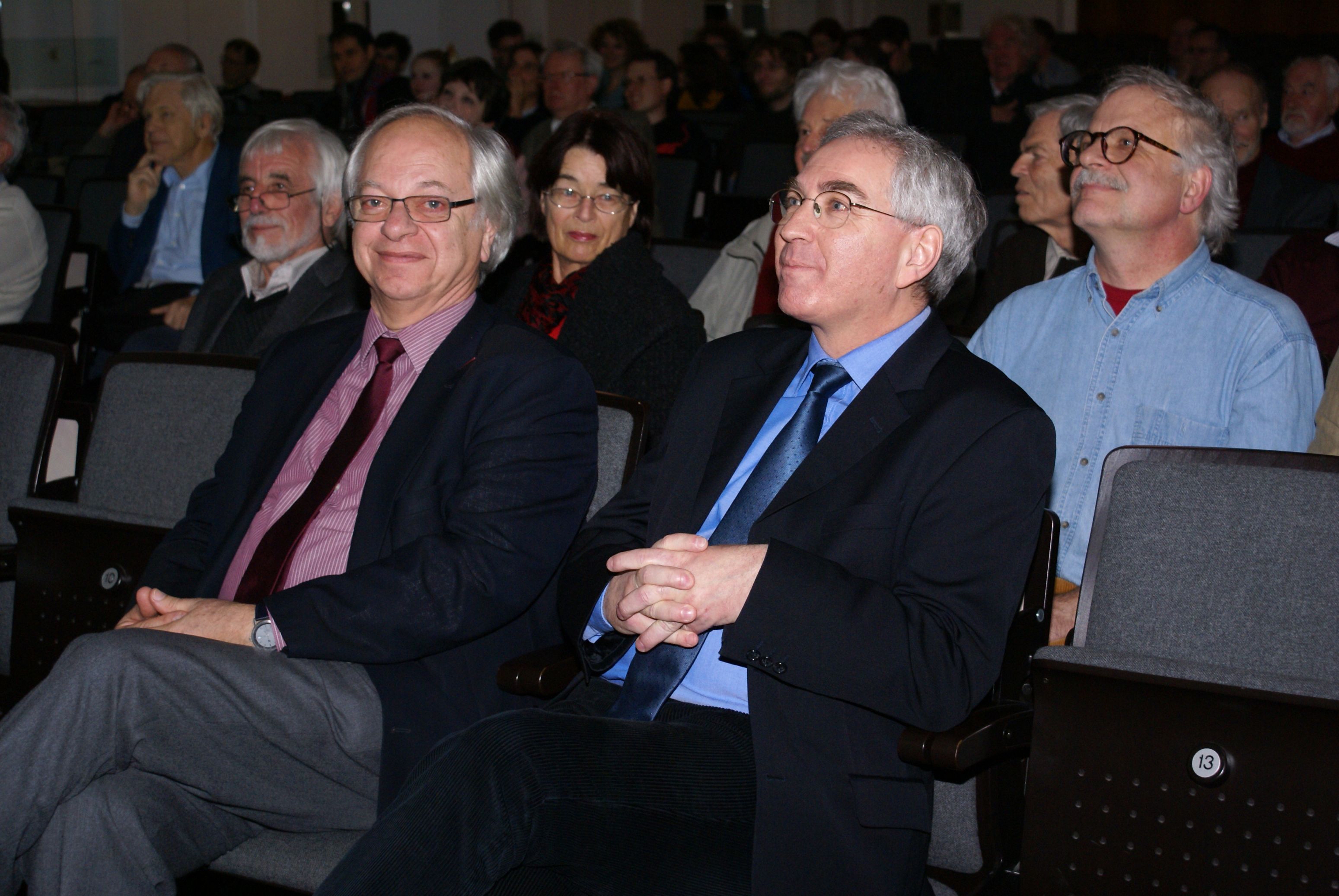 Prof. Helbing (rechts) zusammen mit  Prof. Müller-Preußker (links) nach dem Vortrag.