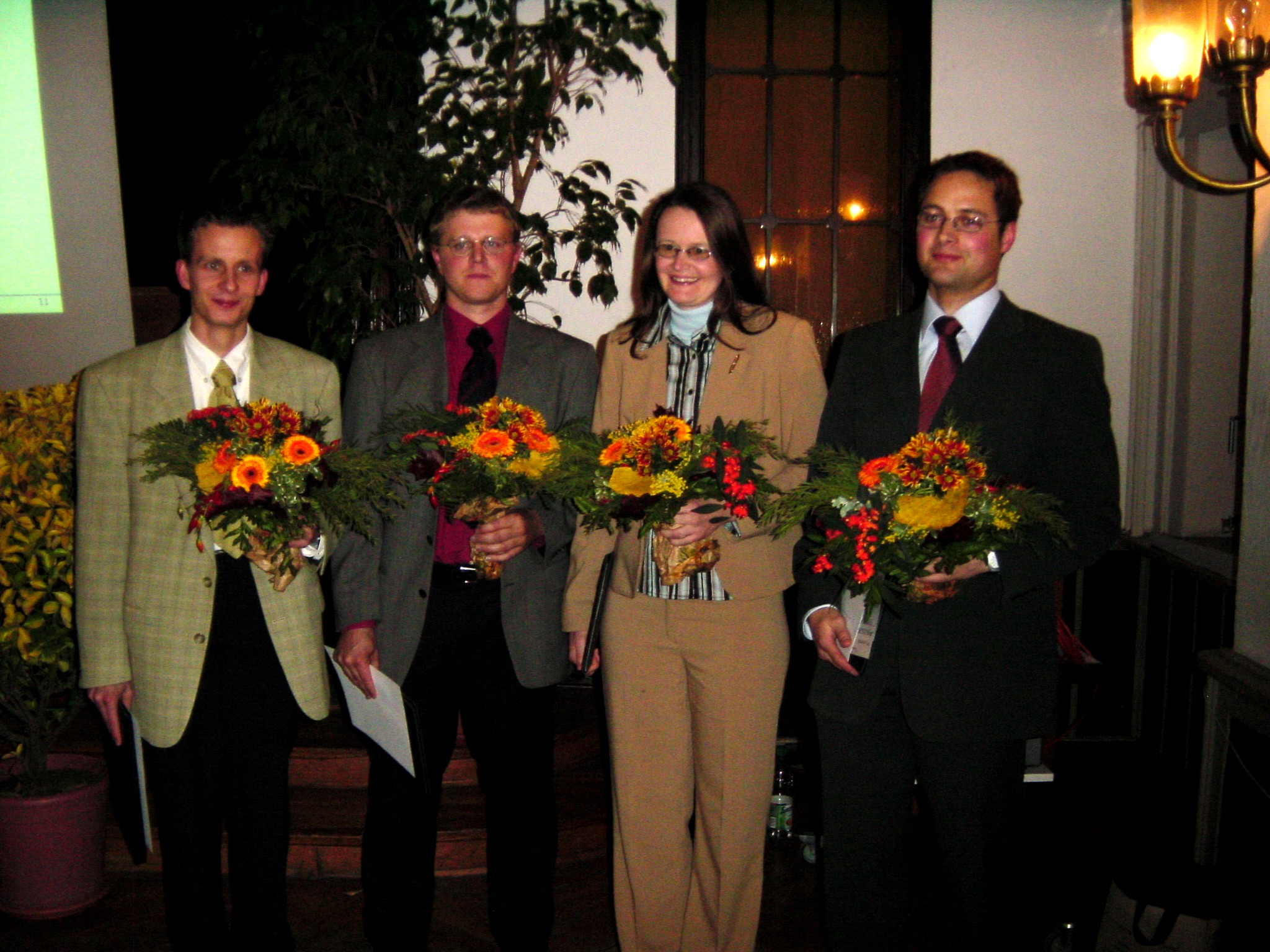 Die Preisträgerin und Preisträger des Jahres 2005 (von links nach rechts: Dr. Frank Jäckel, Dr. Jens Förstner, Dr. Ilka Bischofs-Pfeifer und Dr. Helmut Lippert). |