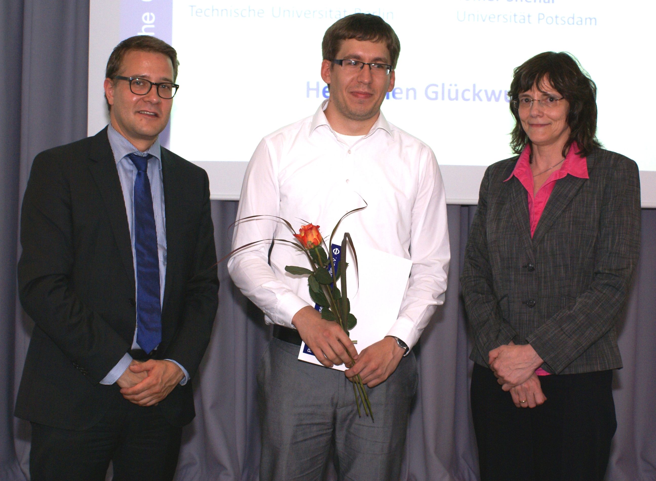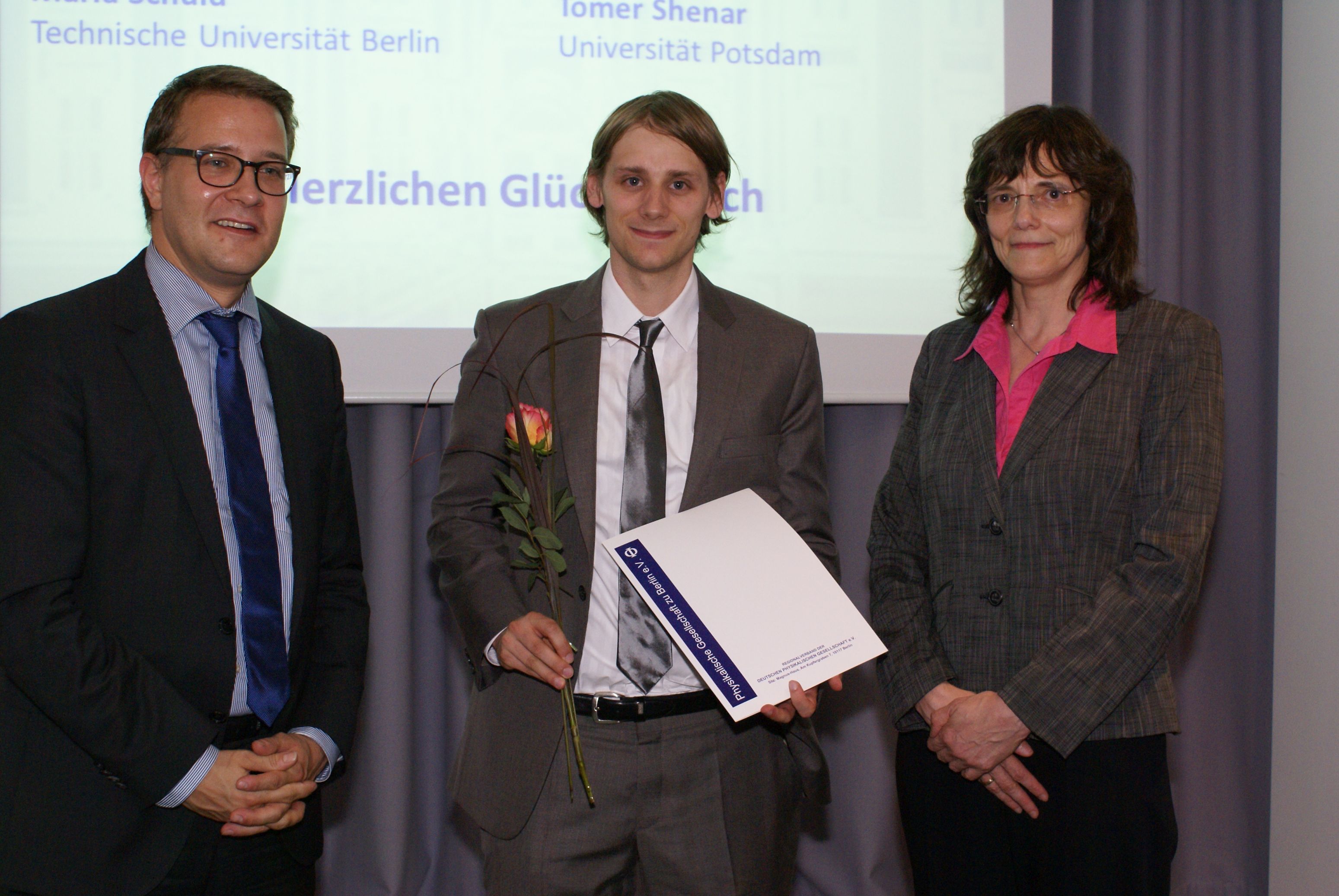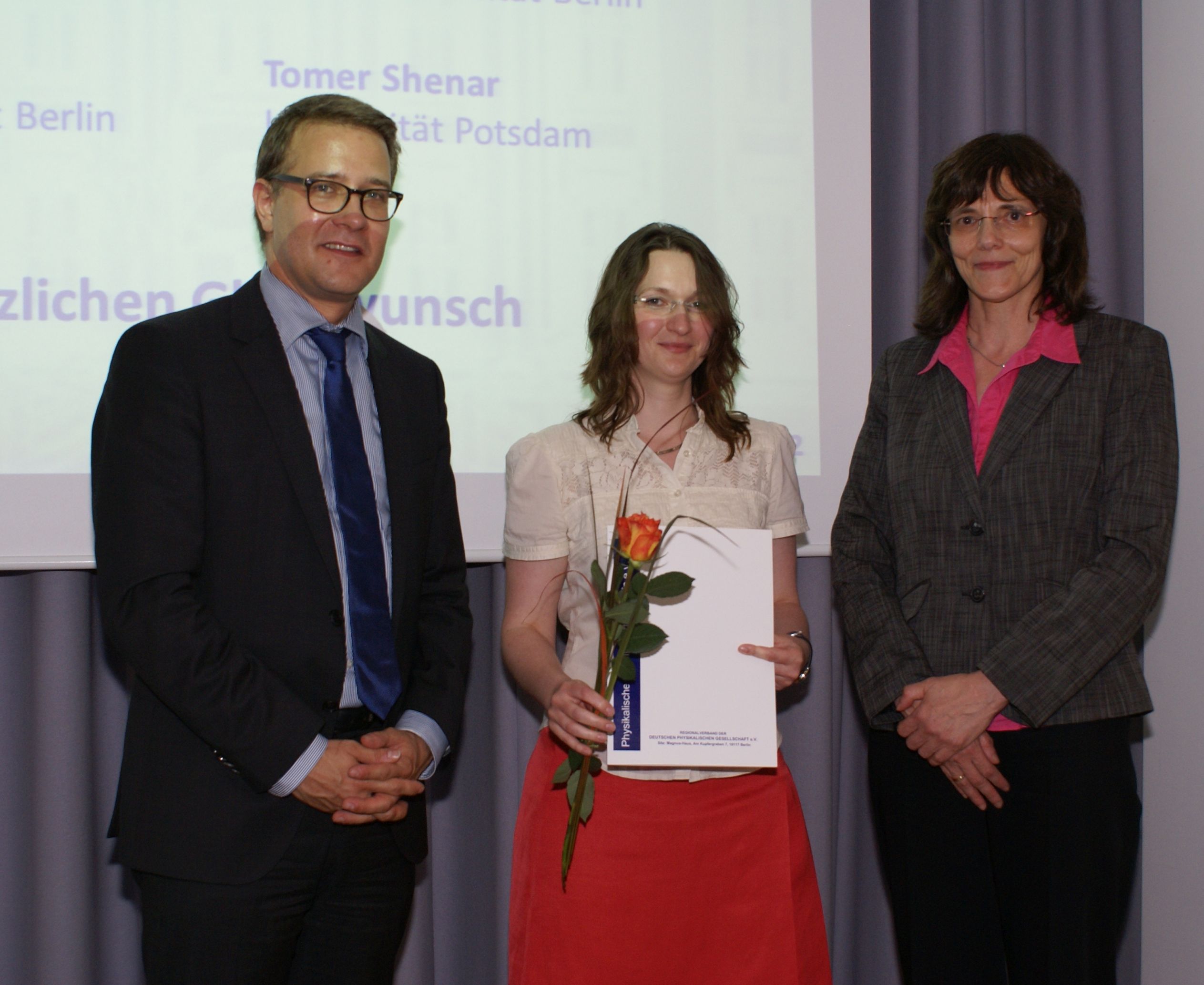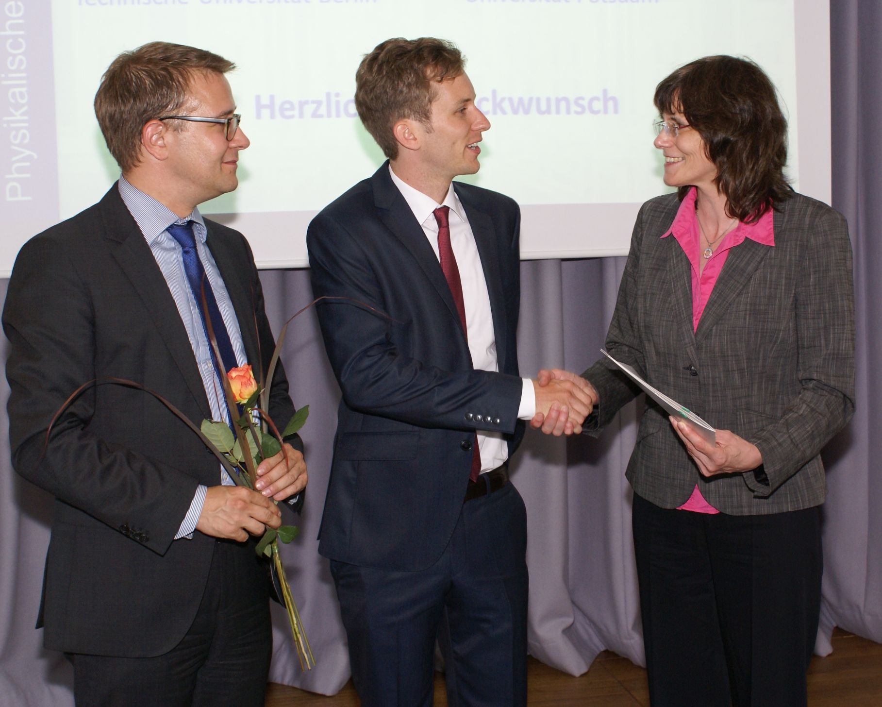 Der Physik-Studienpreis 2014 wurde von Herrn A. Grasse (links) und Frau U. Woggon (rechts) an die jeweilige Preisträgerin bzw. den jeweiligen Preisträger übergeben: