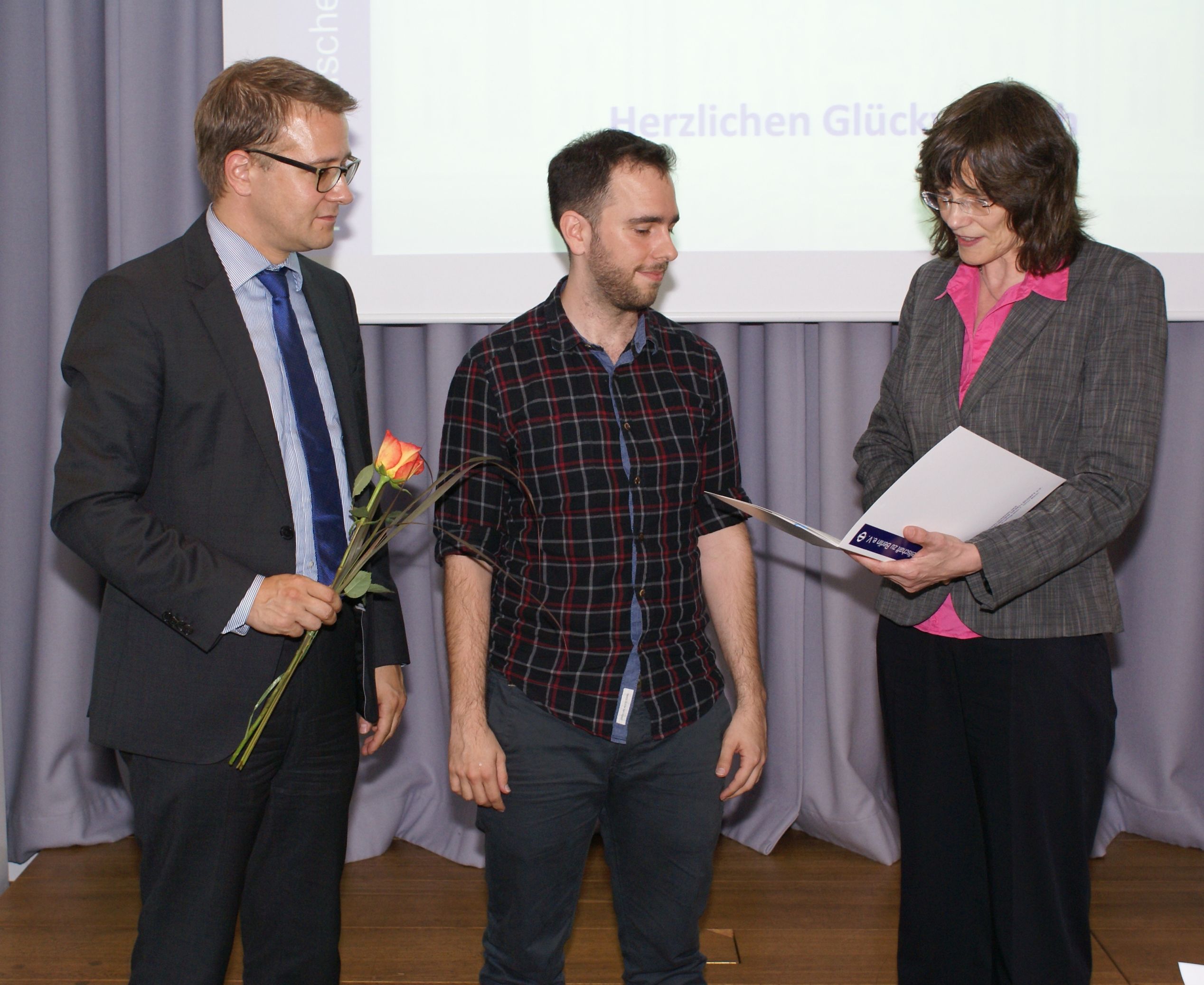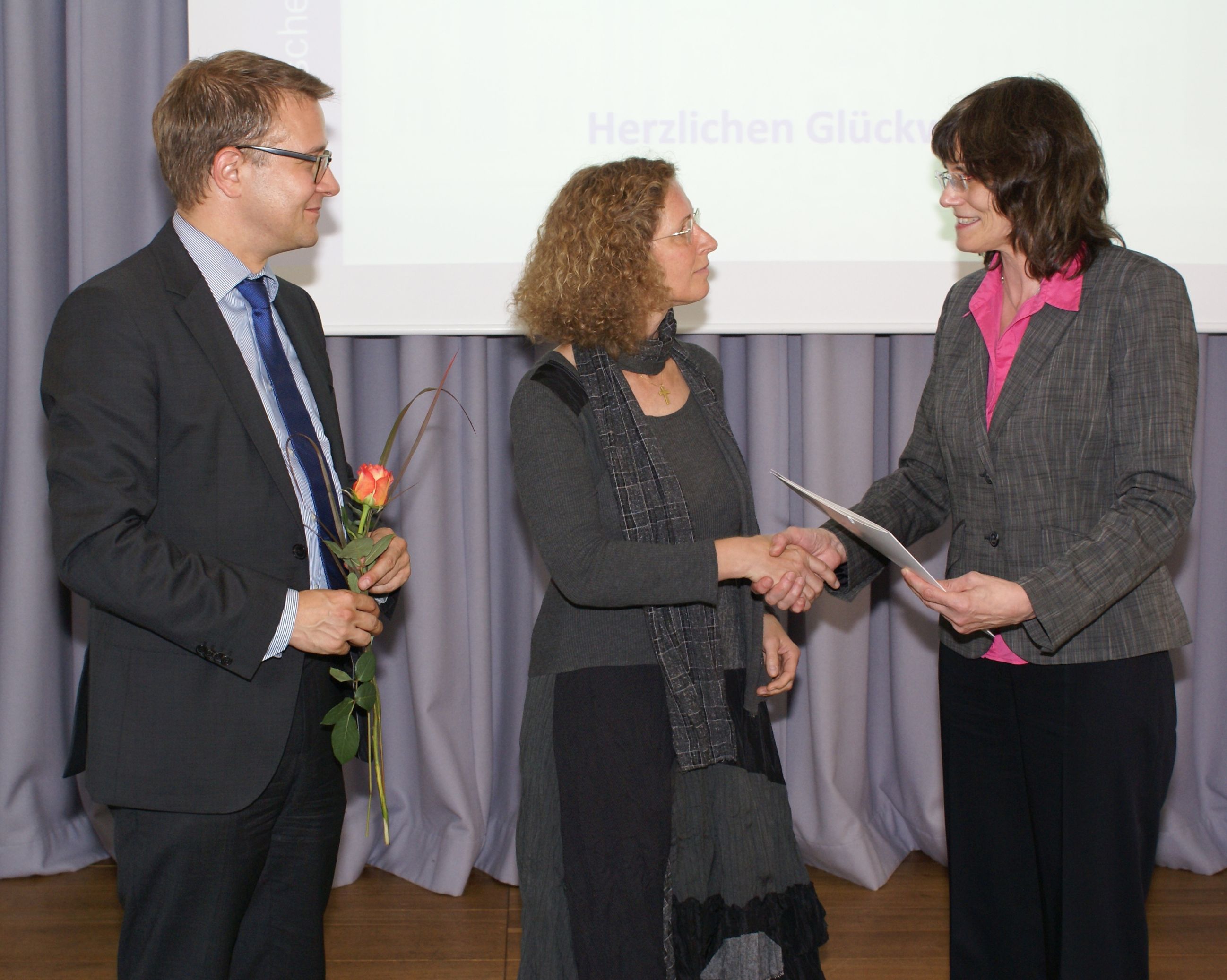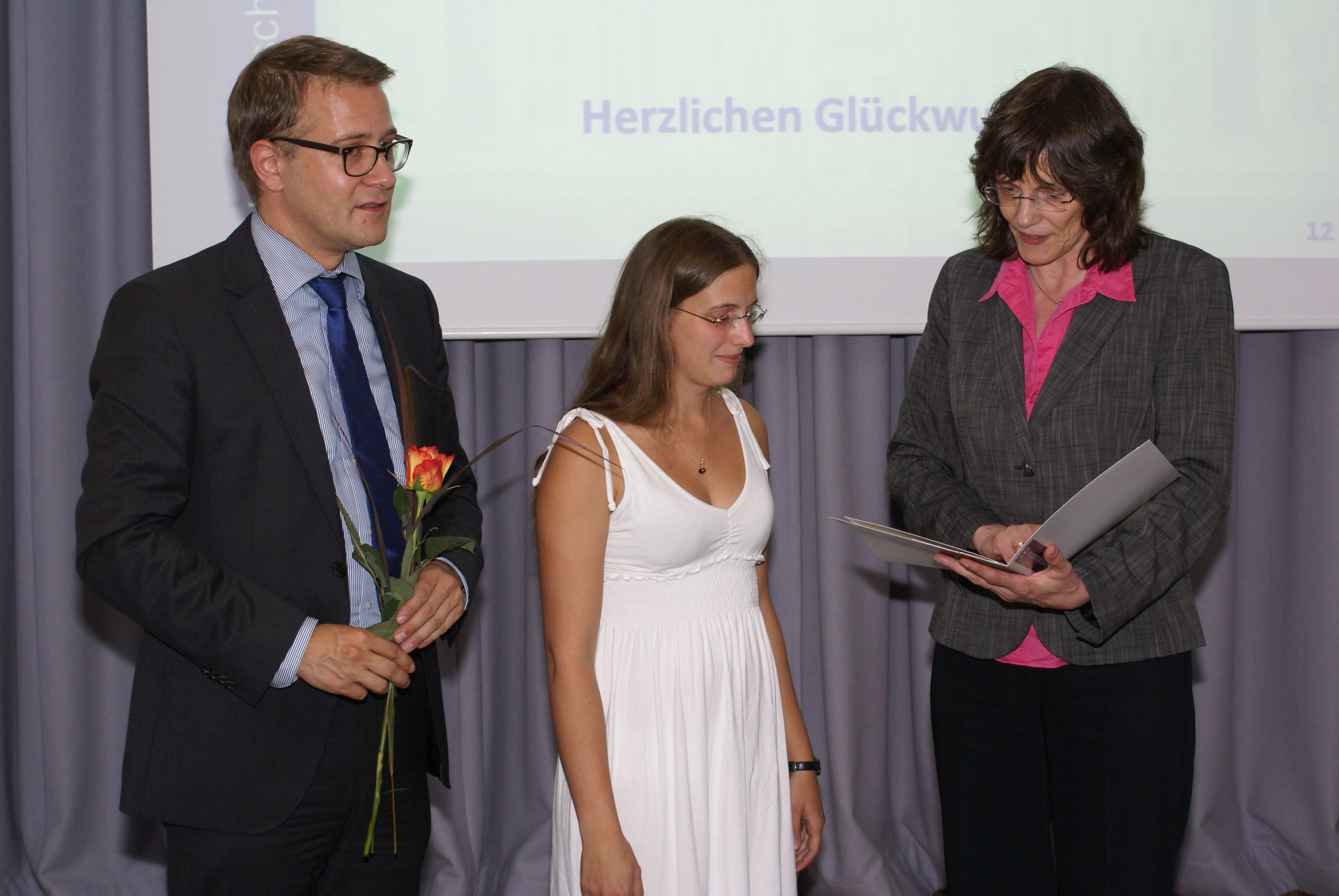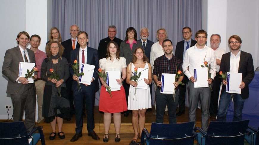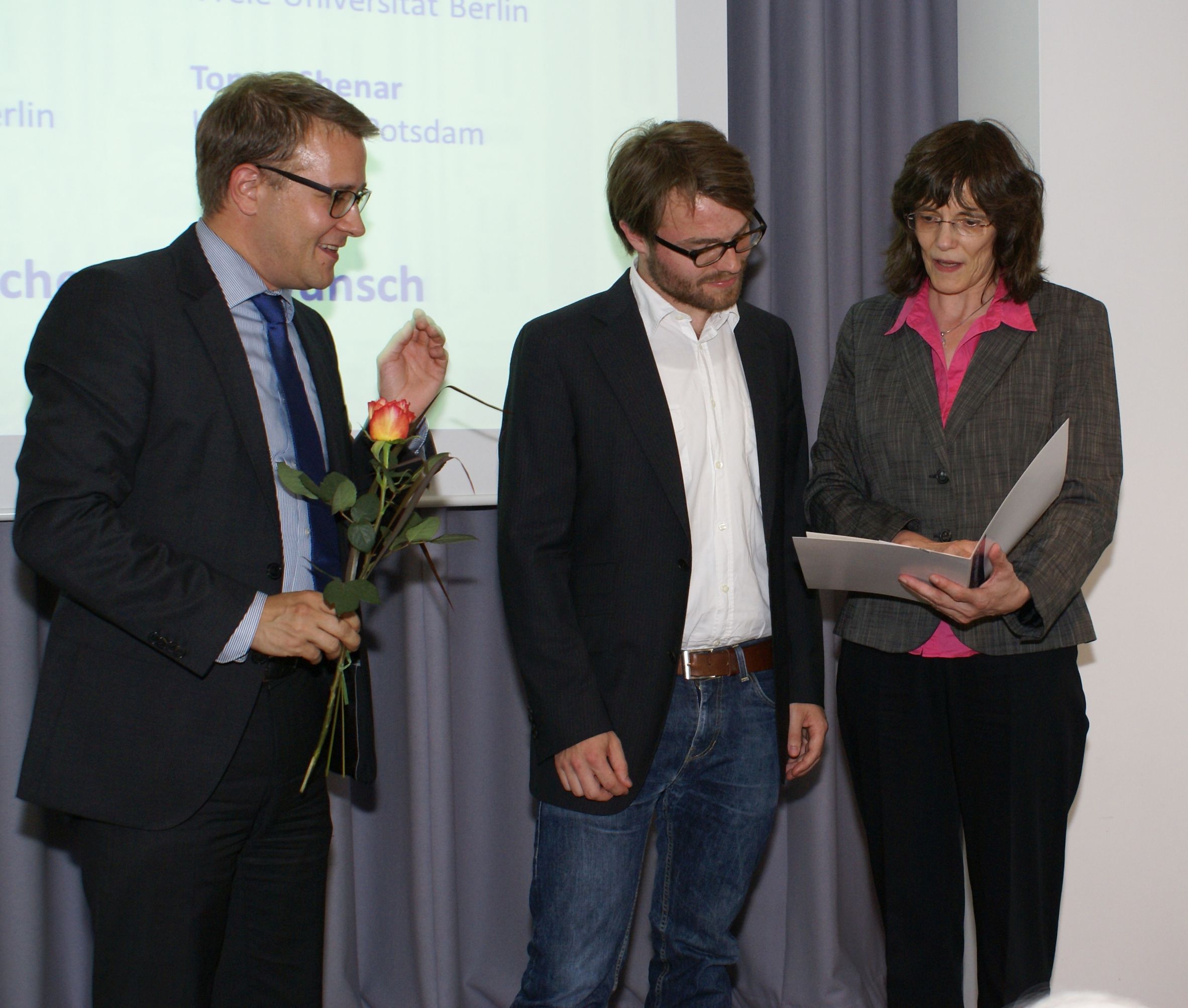 Der Physik-Studienpreis 2014 wurde von Herrn A. Grasse (links) und Frau U. Woggon (rechts) an die jeweilige Preisträgerin bzw. den jeweiligen Preisträger übergeben: