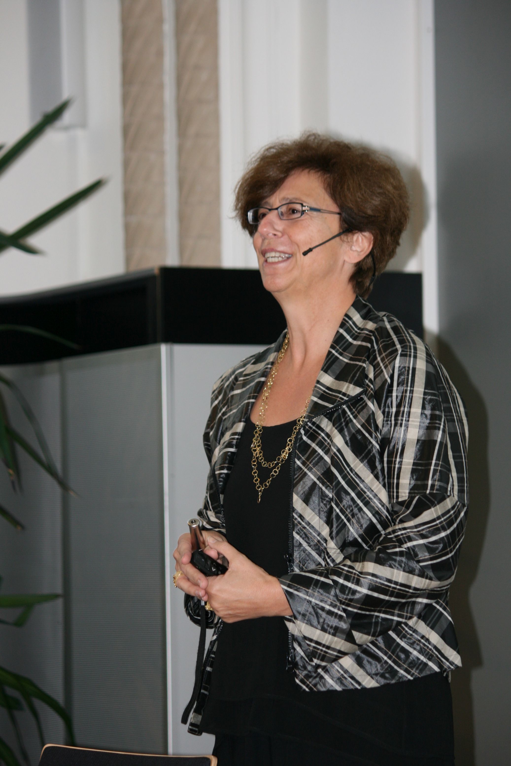 Prof. Keller ganz entspannt nach ihrem Vortrag beim anschließenden Empfang auf der Galerie (zum Vergrößern Bild anklicken). |