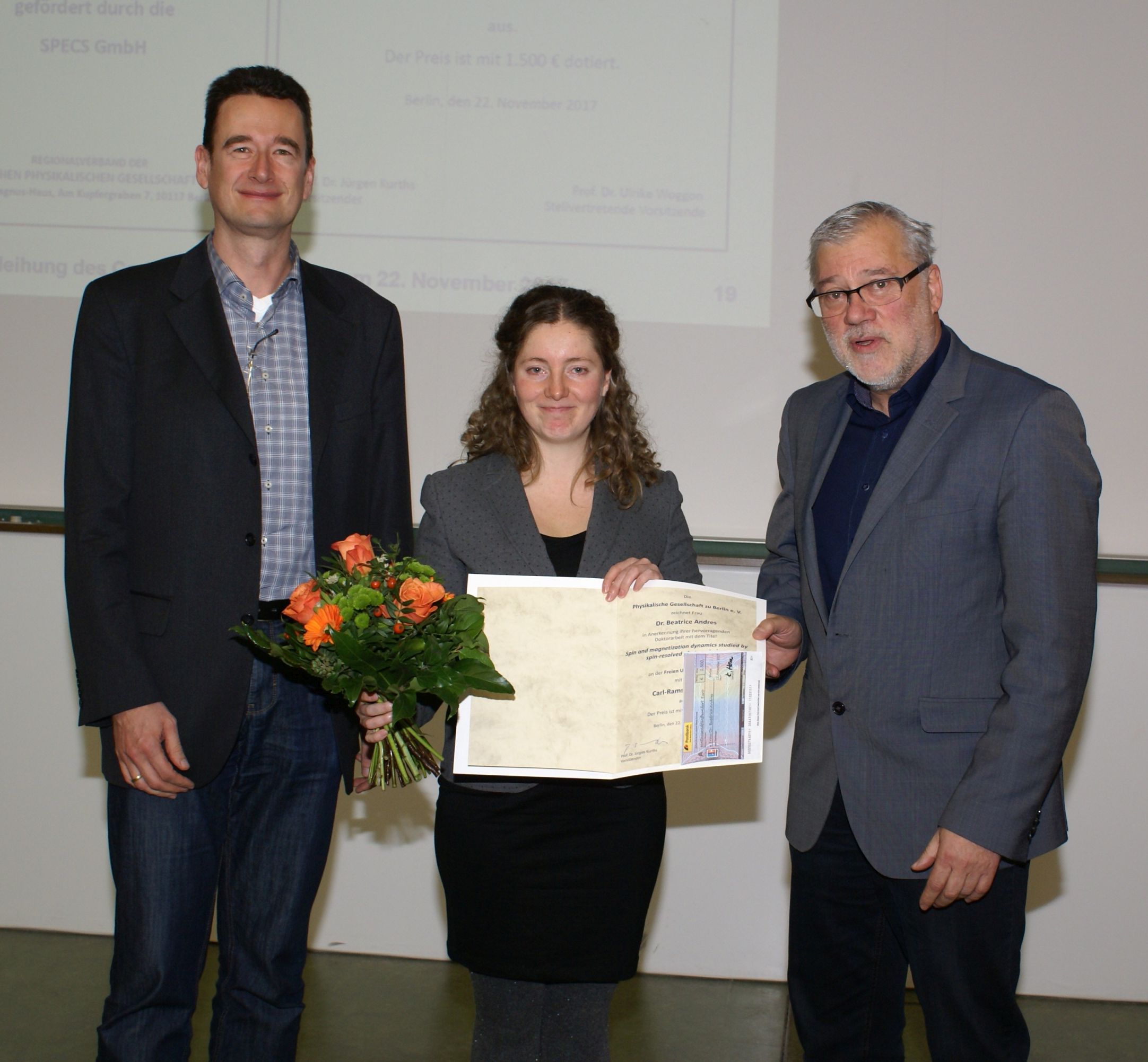 Die Preisträgerin Dr. Beatrice Andres (mitte)