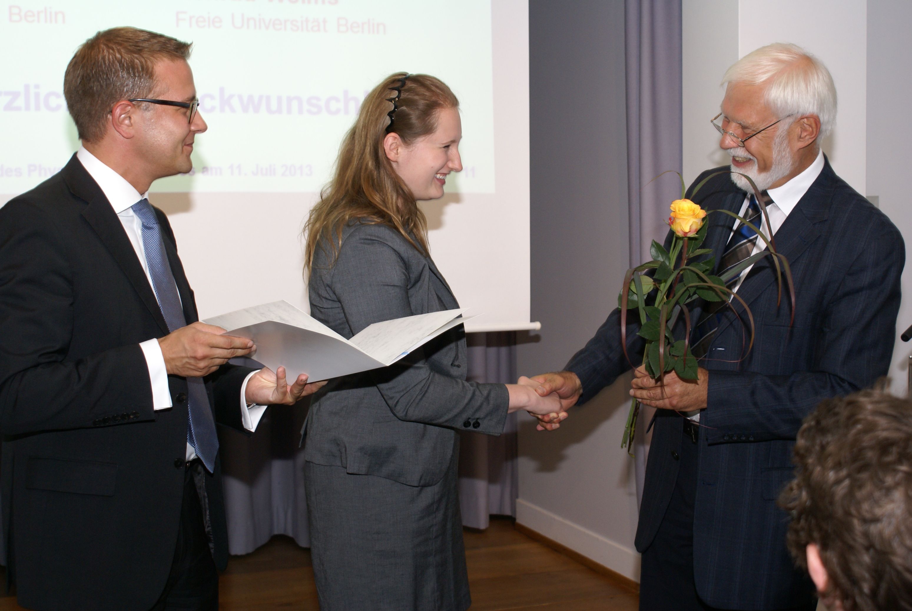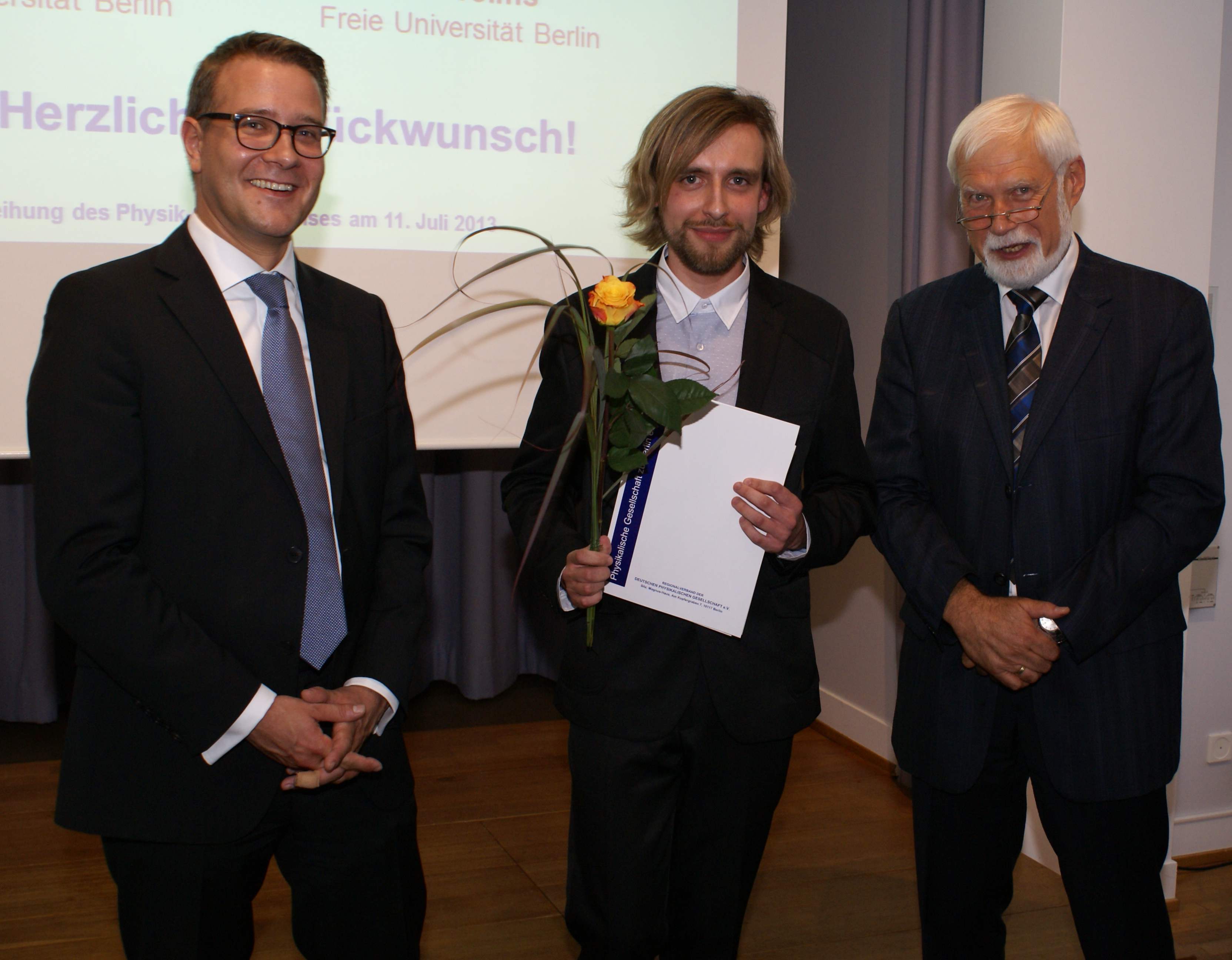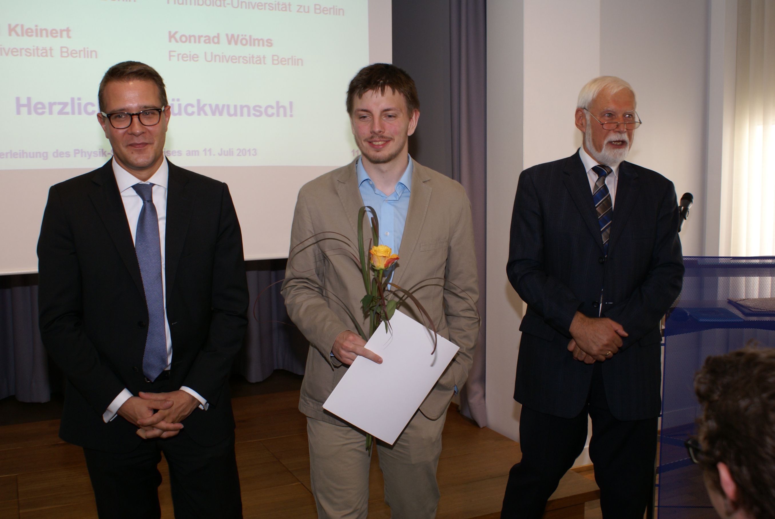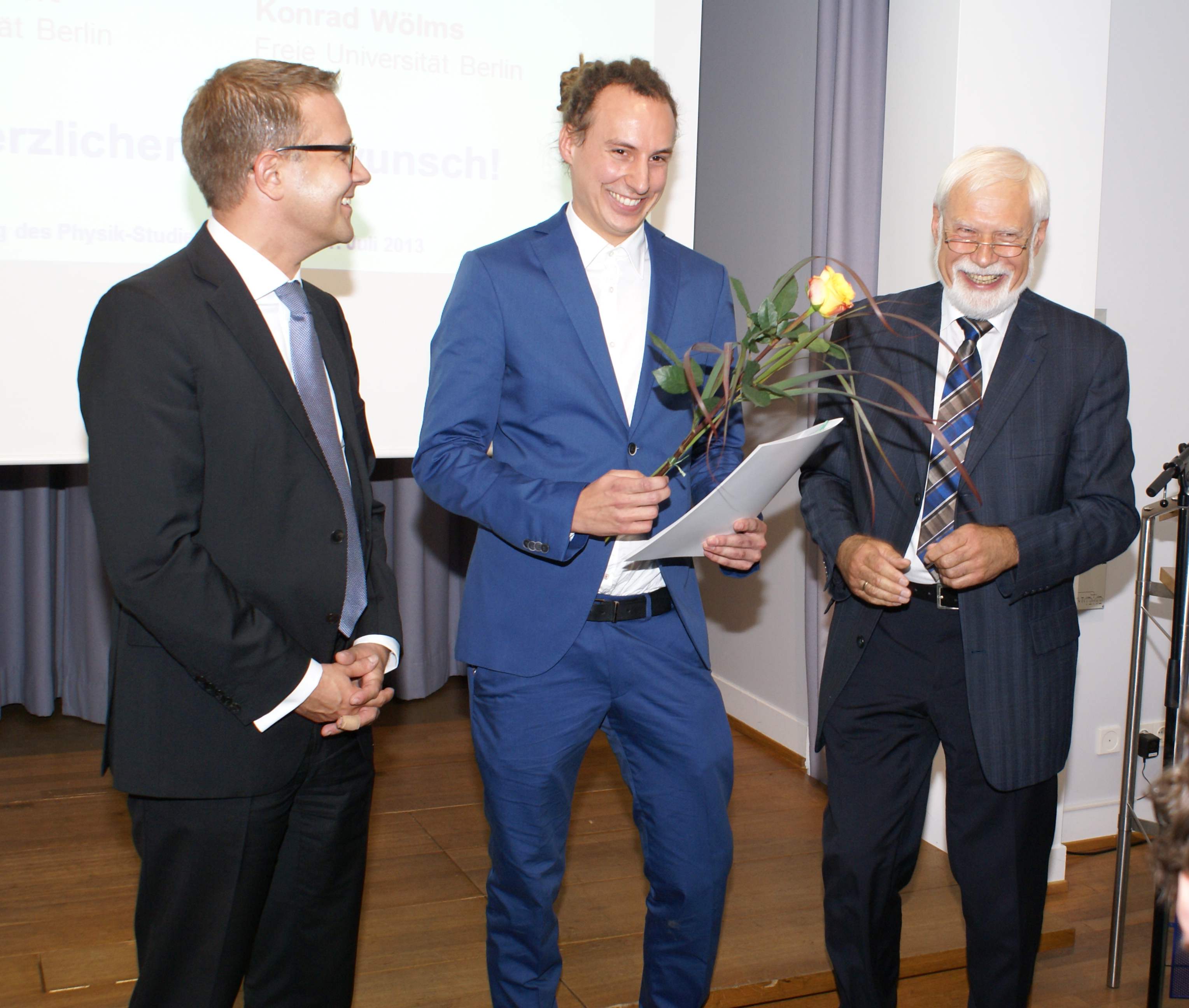 Der Physik-Studienpreis 2013 wurde von Herrn A. Grasse (links) und Herrn M. Müller-Preußker (rechts) an die jeweilige Preisträgerin bzw. den jeweiligen Preisträger übergeben: