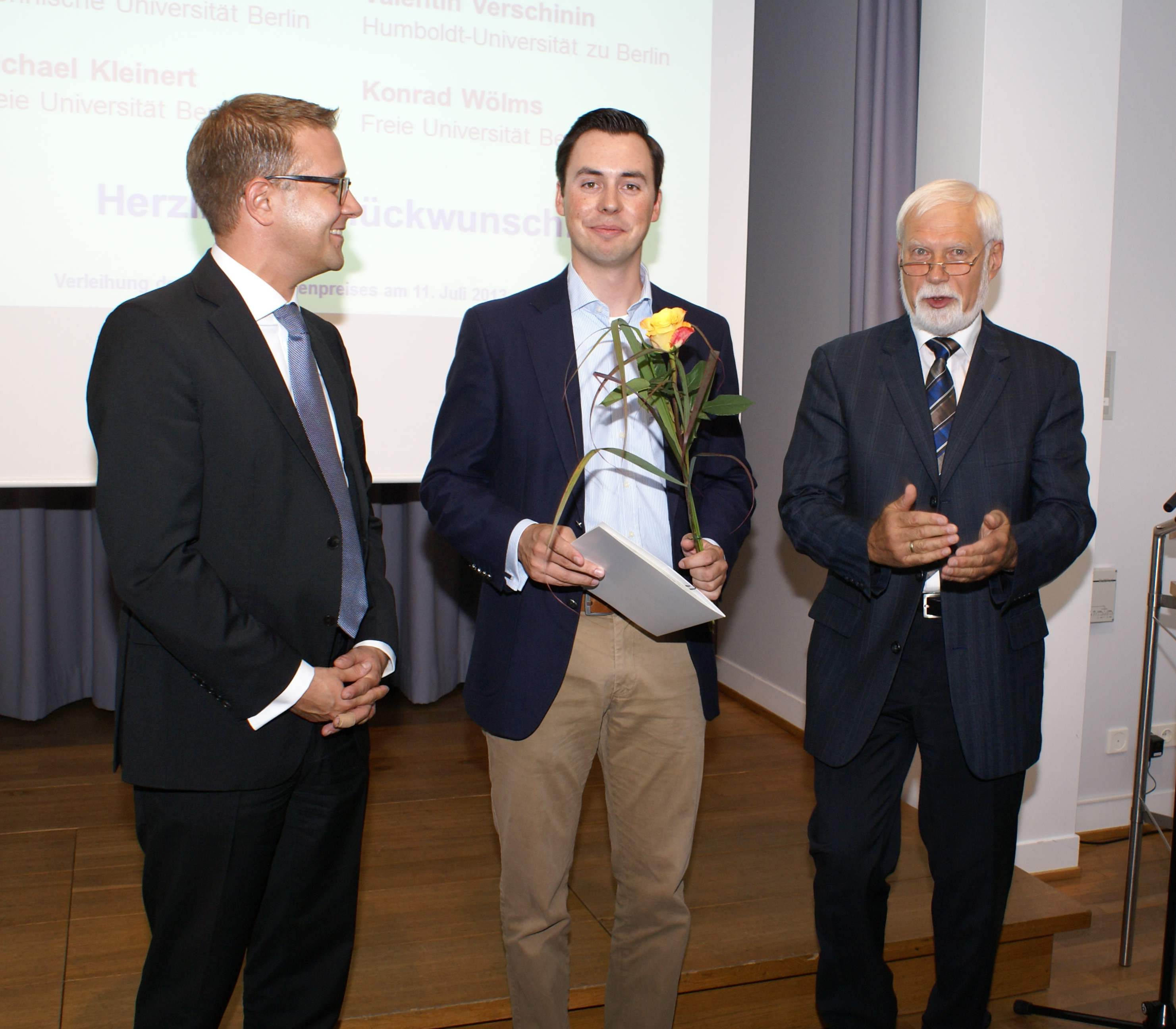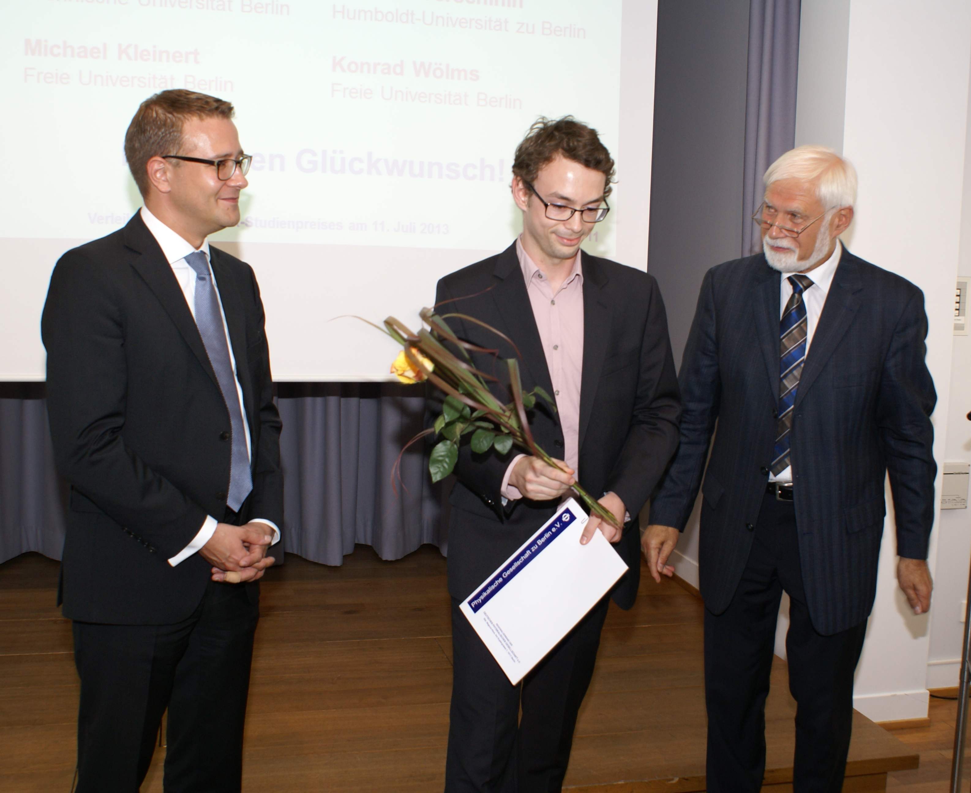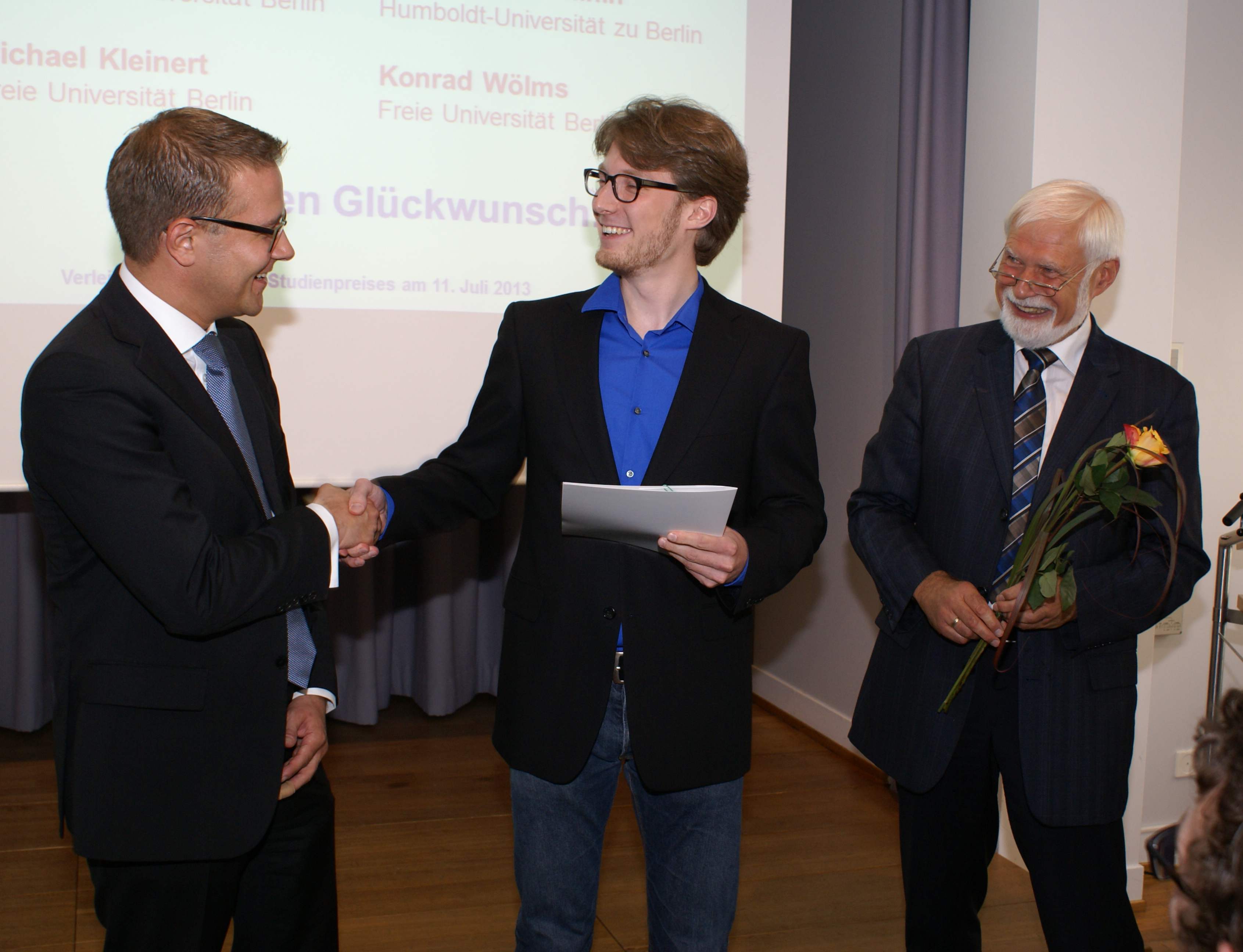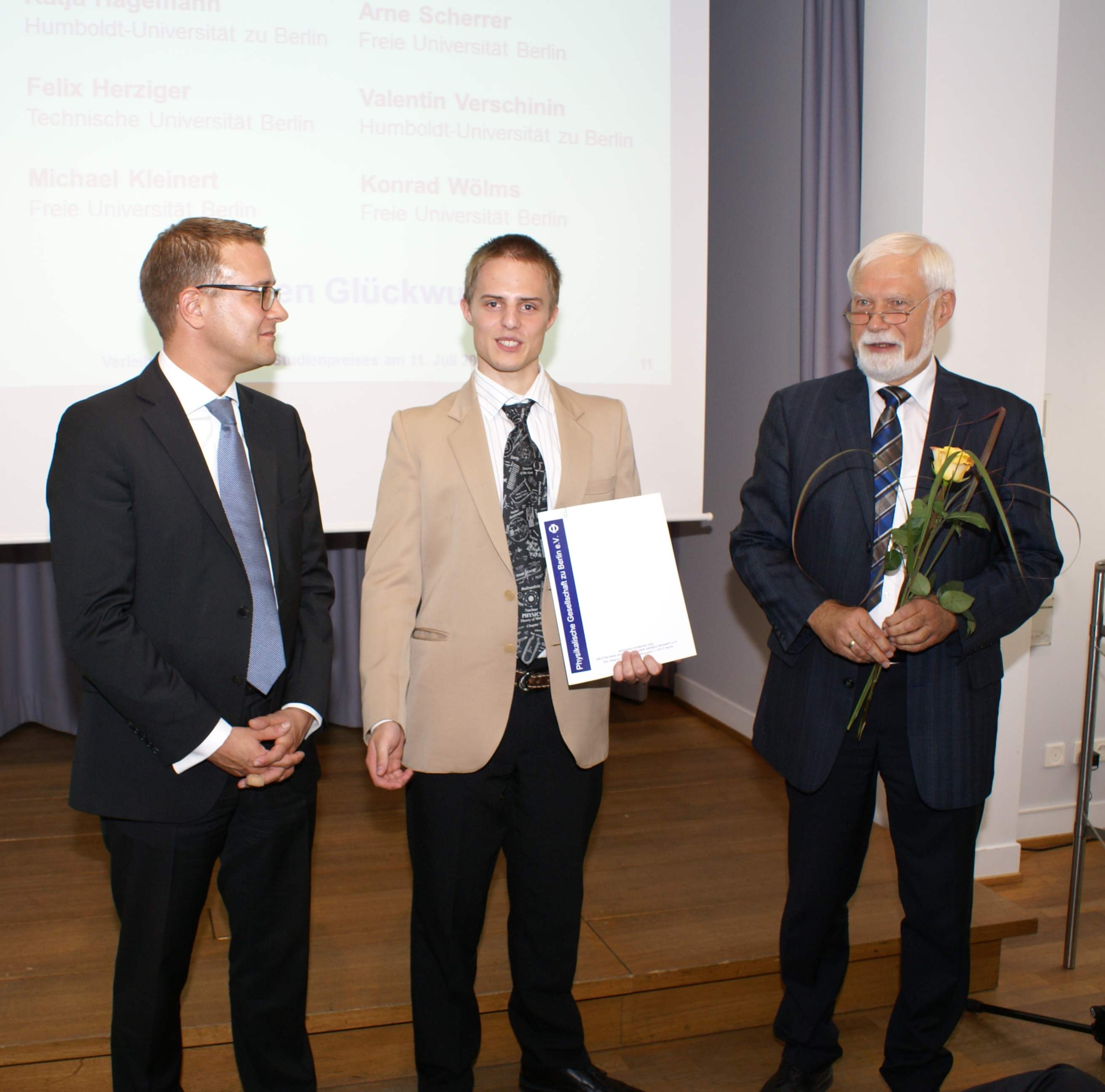 Der Physik-Studienpreis 2013 wurde von Herrn A. Grasse (links) und Herrn M. Müller-Preußker (rechts) an die jeweilige Preisträgerin bzw. den jeweiligen Preisträger übergeben: