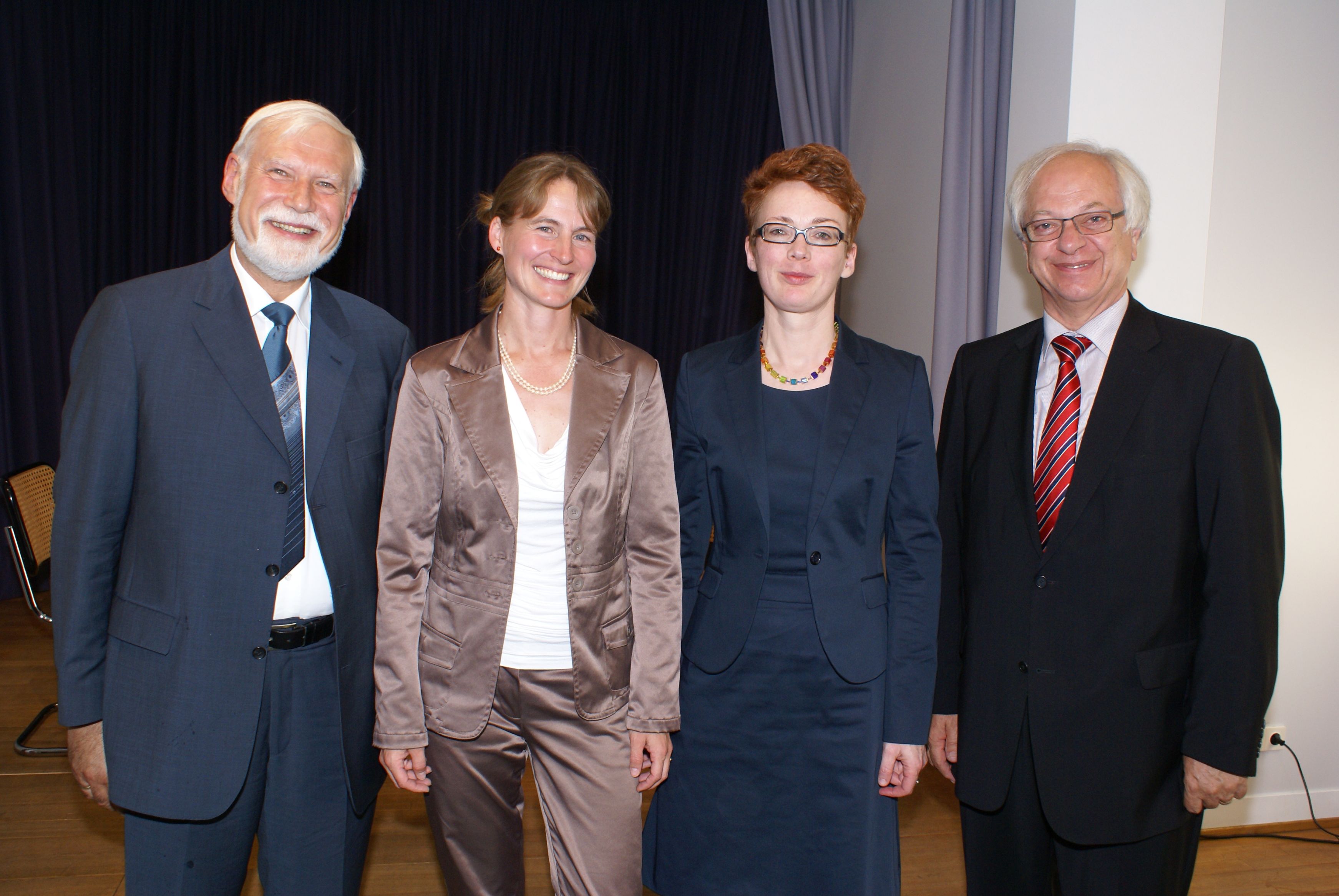Die Karl-Scheel-Preisträgerin 2012, K. Lüdge  (2. v. l.), mit der Laudatorin, S. Klapp (3. v. l.), dem PGzB-Vorsitzenden, M. Müller-Preußker (links), und dem Stellvertrenden Vorsitzenden der PGzB,  W. Buck (rechts). |