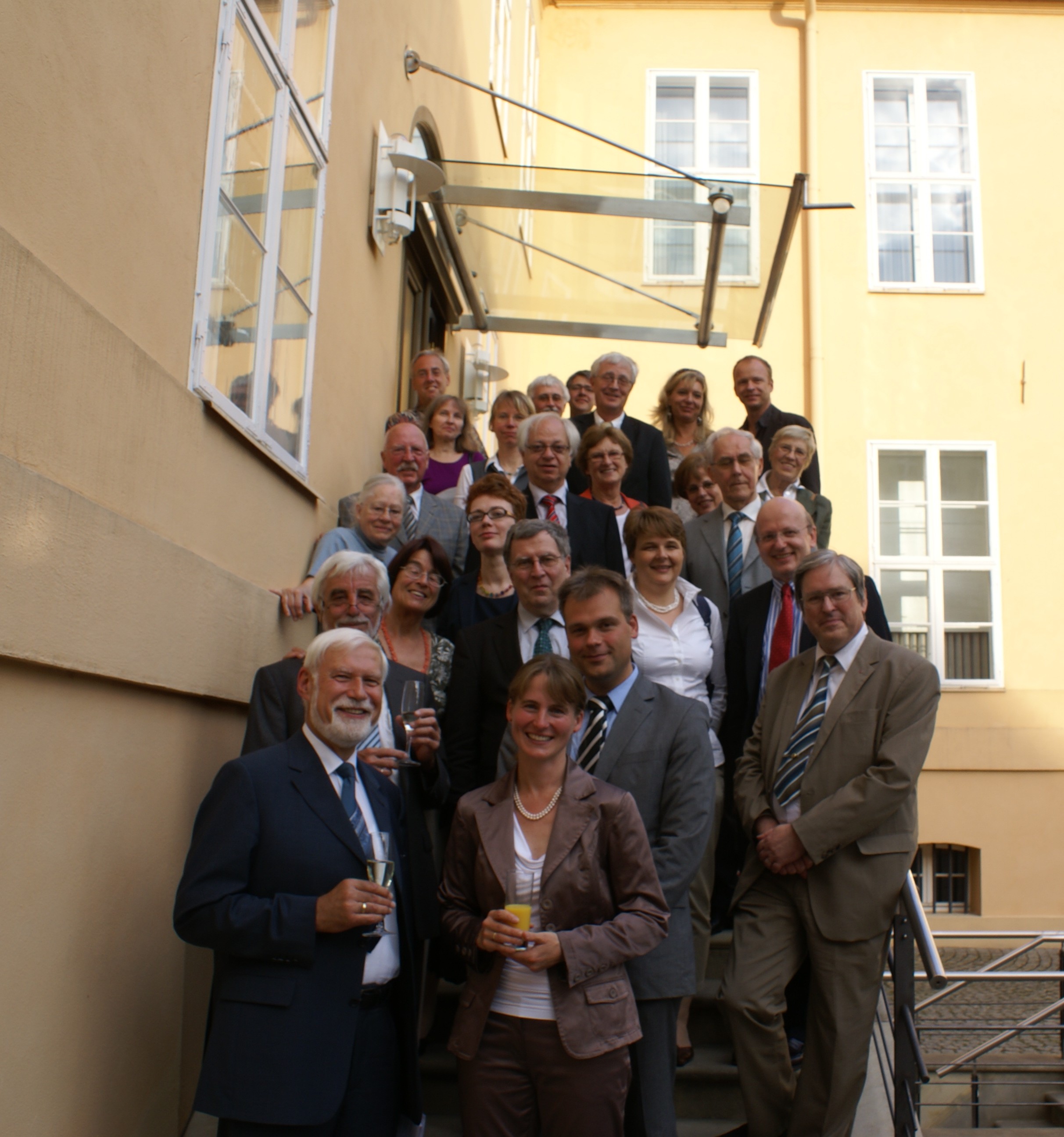 Gruppenfoto mit der Preisträgerin auf der Treppe im Hof des Magnus-Hauses. |