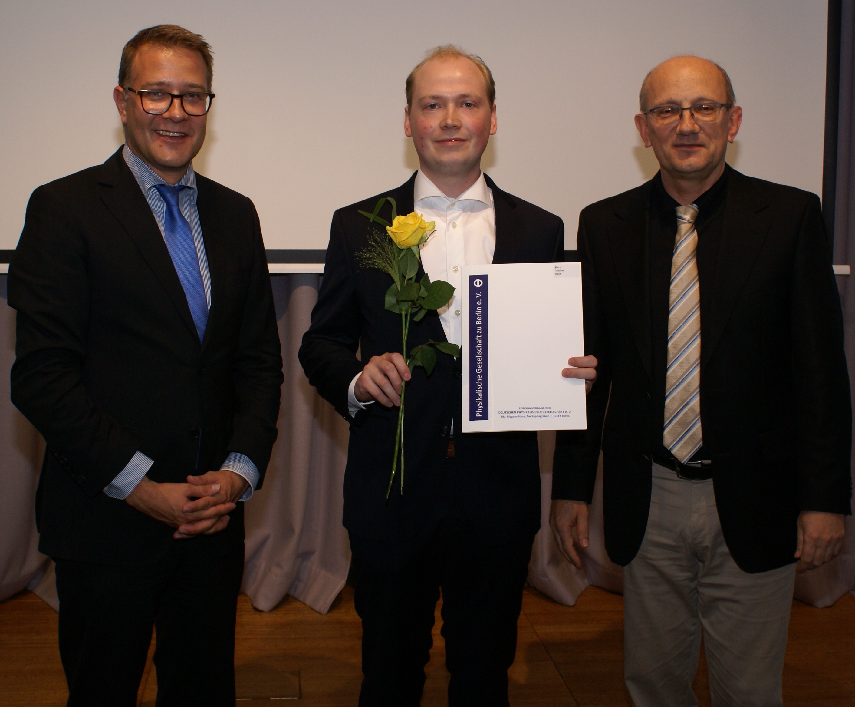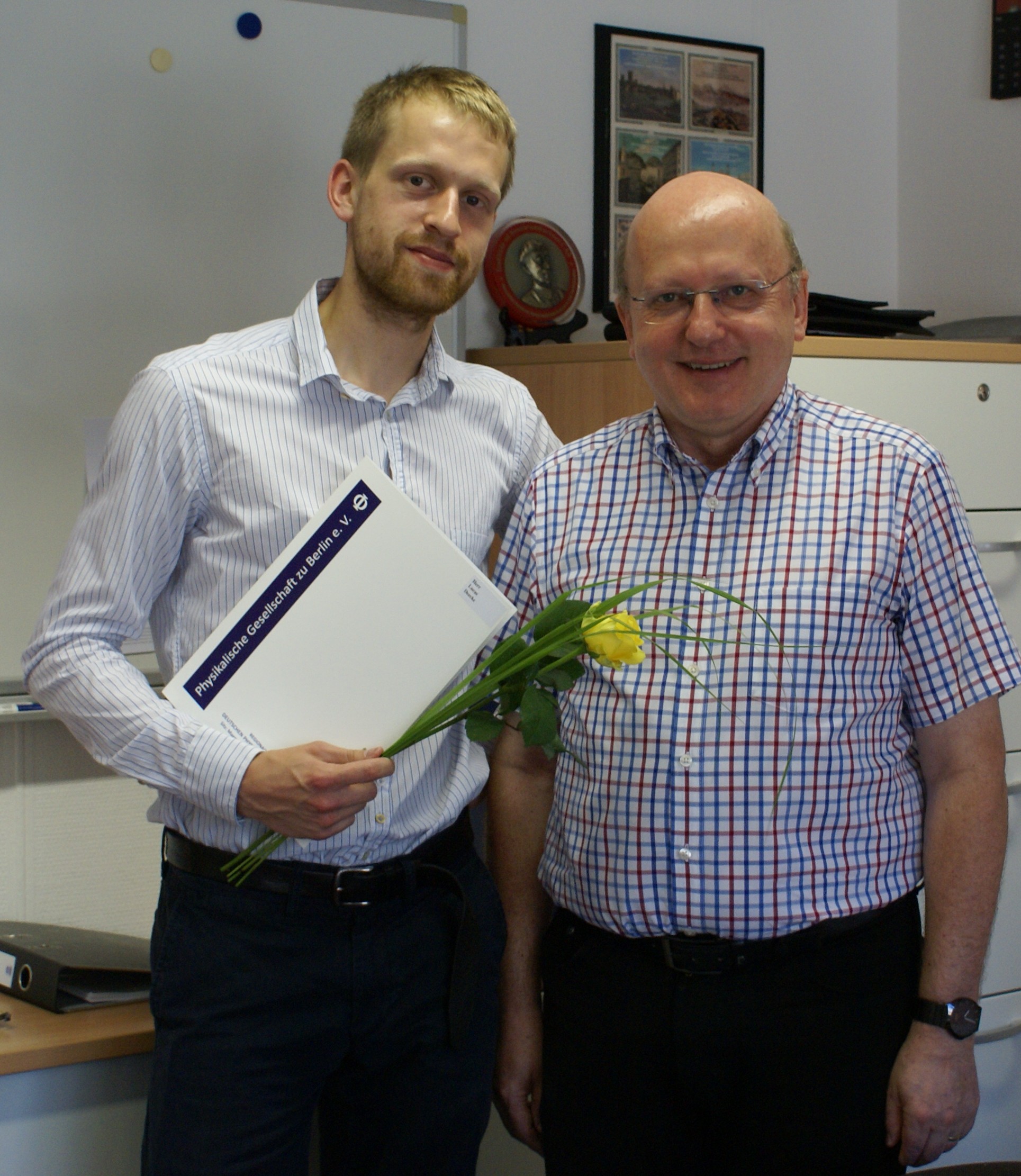 Der Physik-Studienpreis 2018 wird von Herrn Prof. Wolf (rechts) und Herrn Grasse (links)