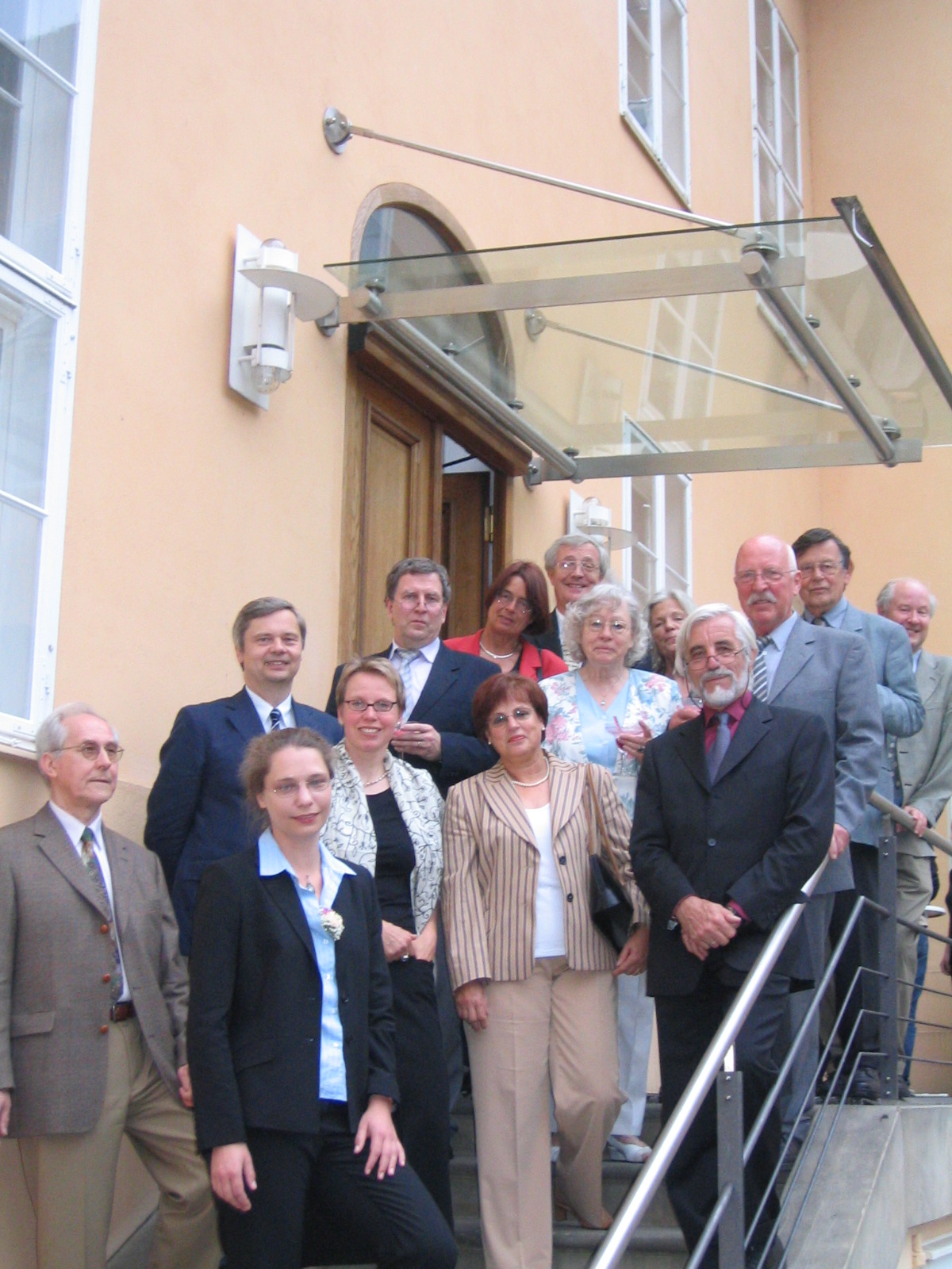 Gruppenfoto mit der Preisträgerin auf der Treppe im Hof des Magnus-Hauses.