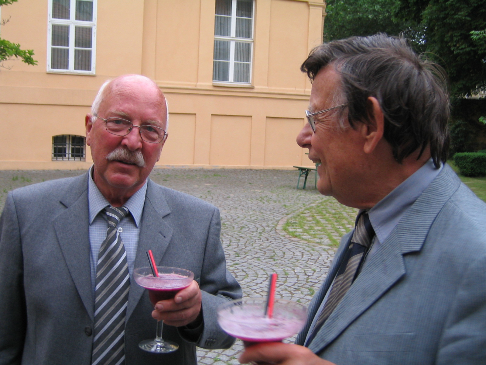 Der wissenschaftliche Leiter des Magnus-Hauses, Prof. Dr. Theo Mayer-Kuckuk, im Gespräch mit Prof. Dr. Reinhard Nink, Karl-Scheel-Preisträger 1966, Geschäftsführer der PGzB von 1969 bis 1996 und Vorsitzender der PGzB von 1998 bis 2000.