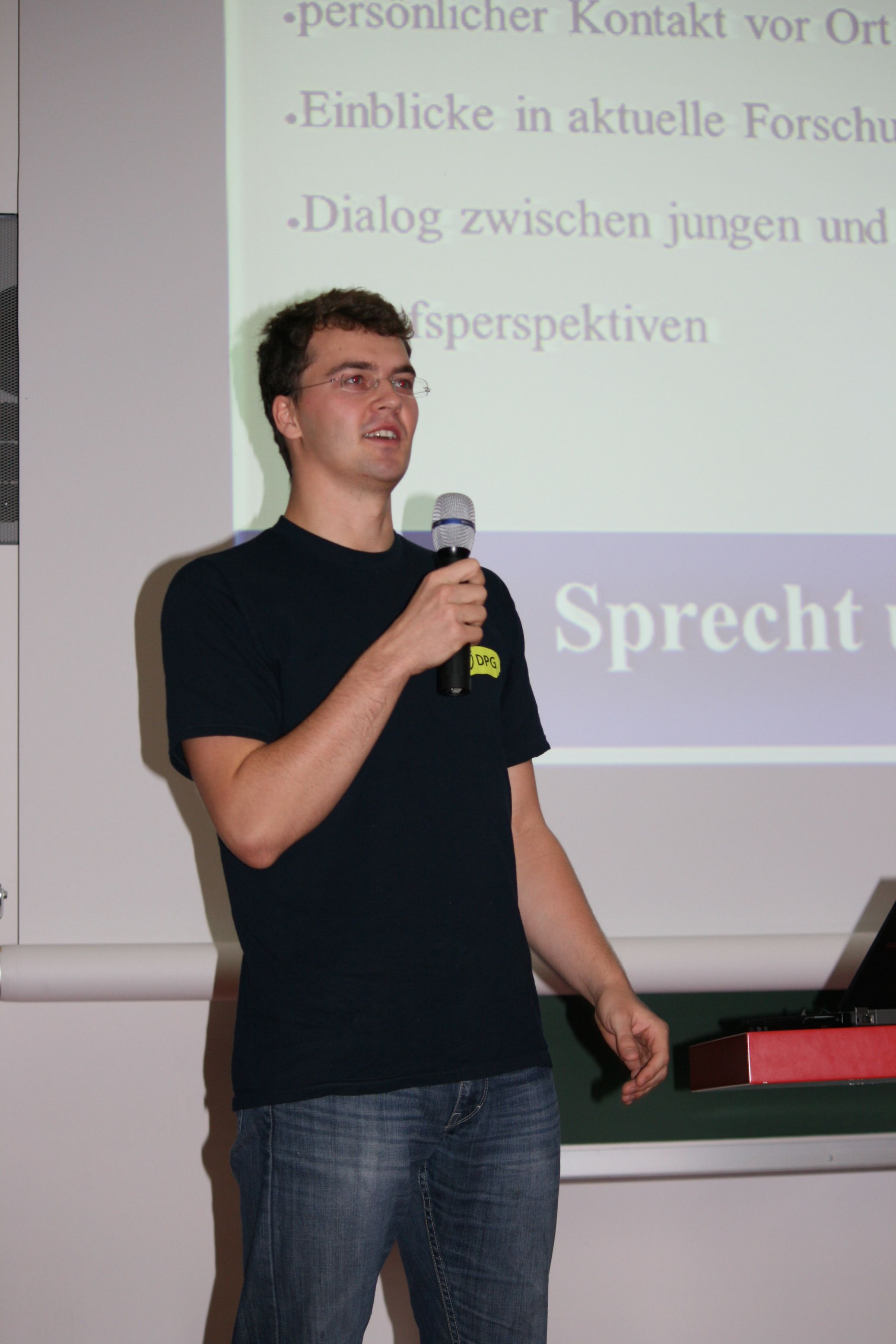 Georg Hieronimus stellt die Aktivitäten der jungen Deutschen Physikalischen Gesellschaft (jDPG) vor.
