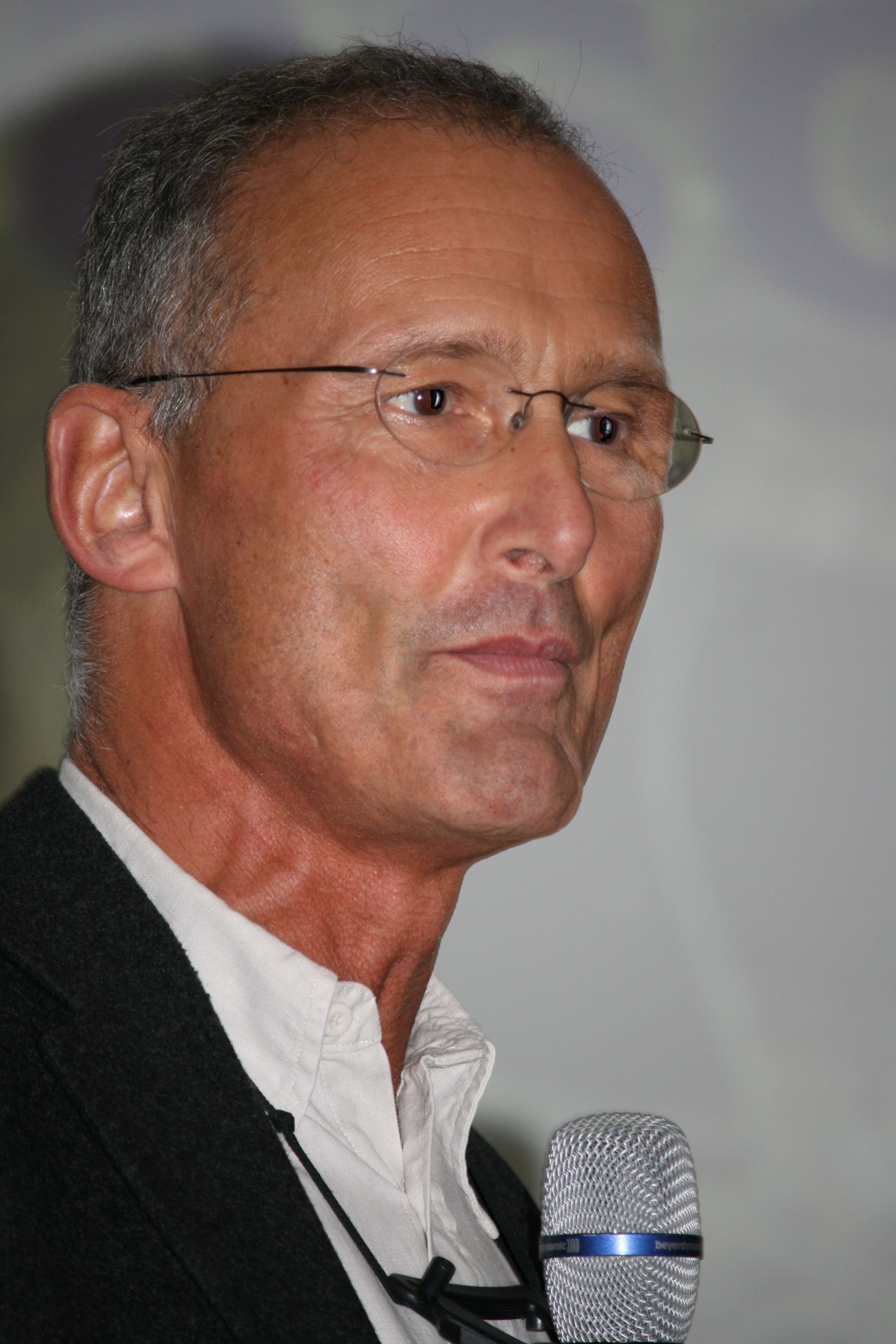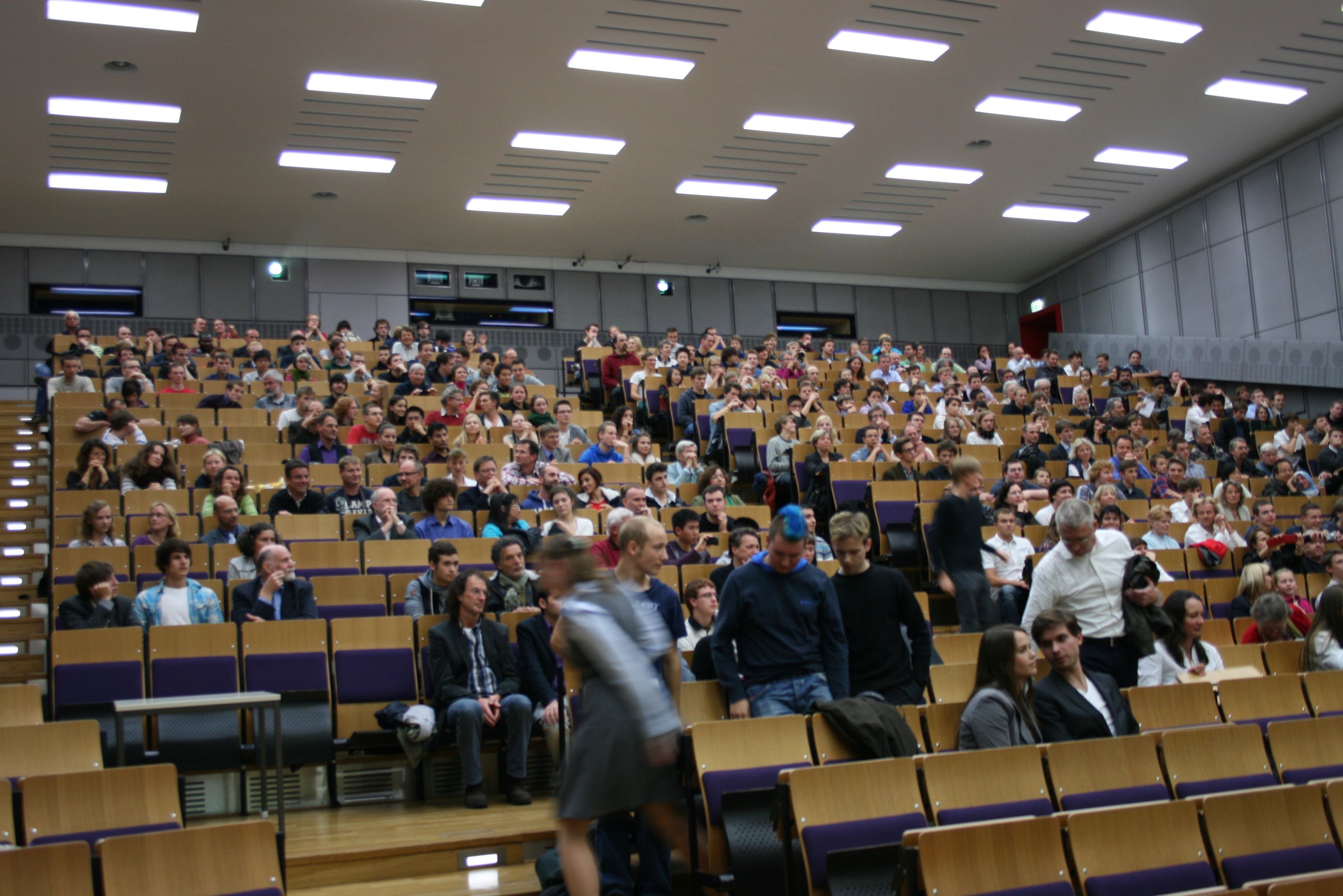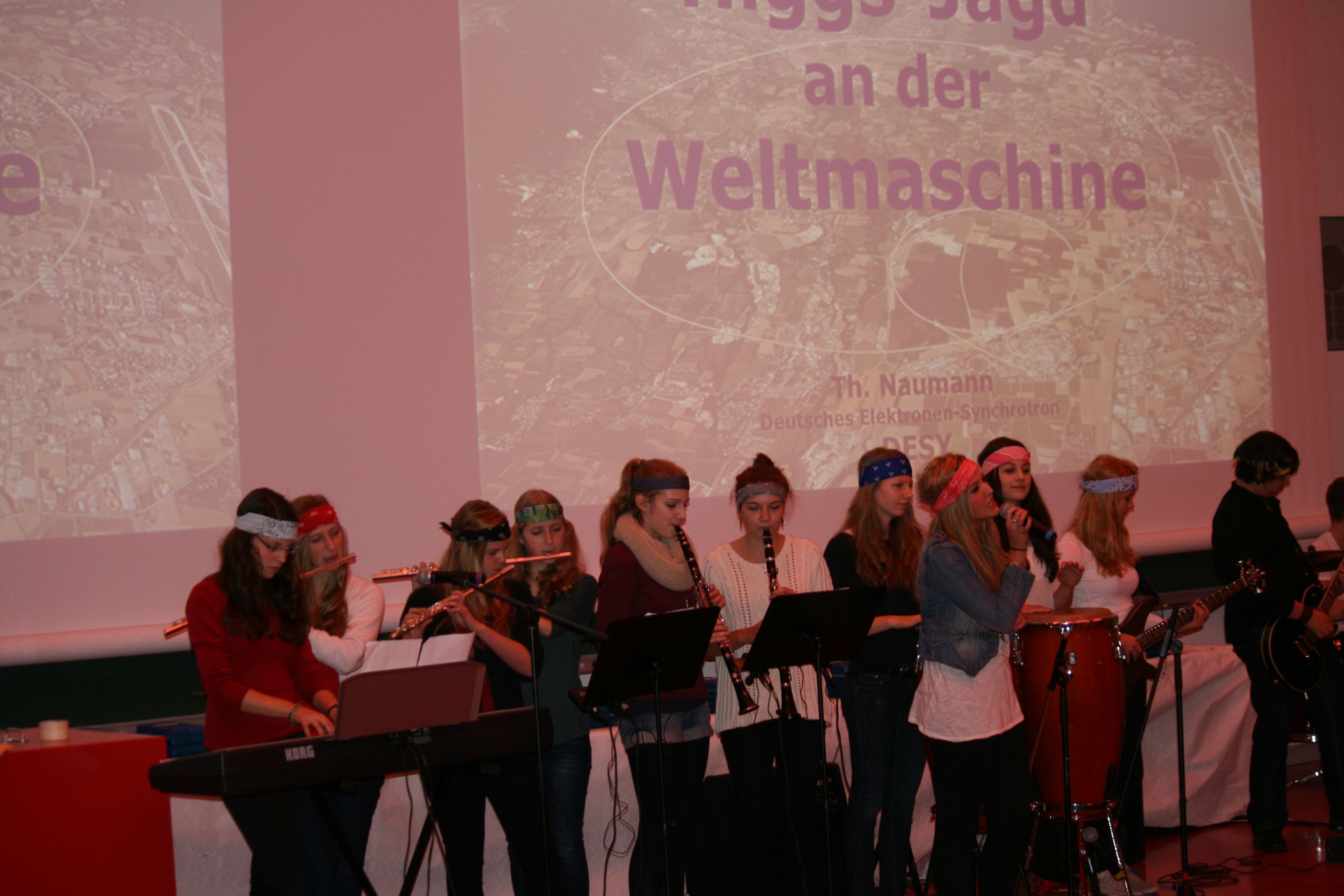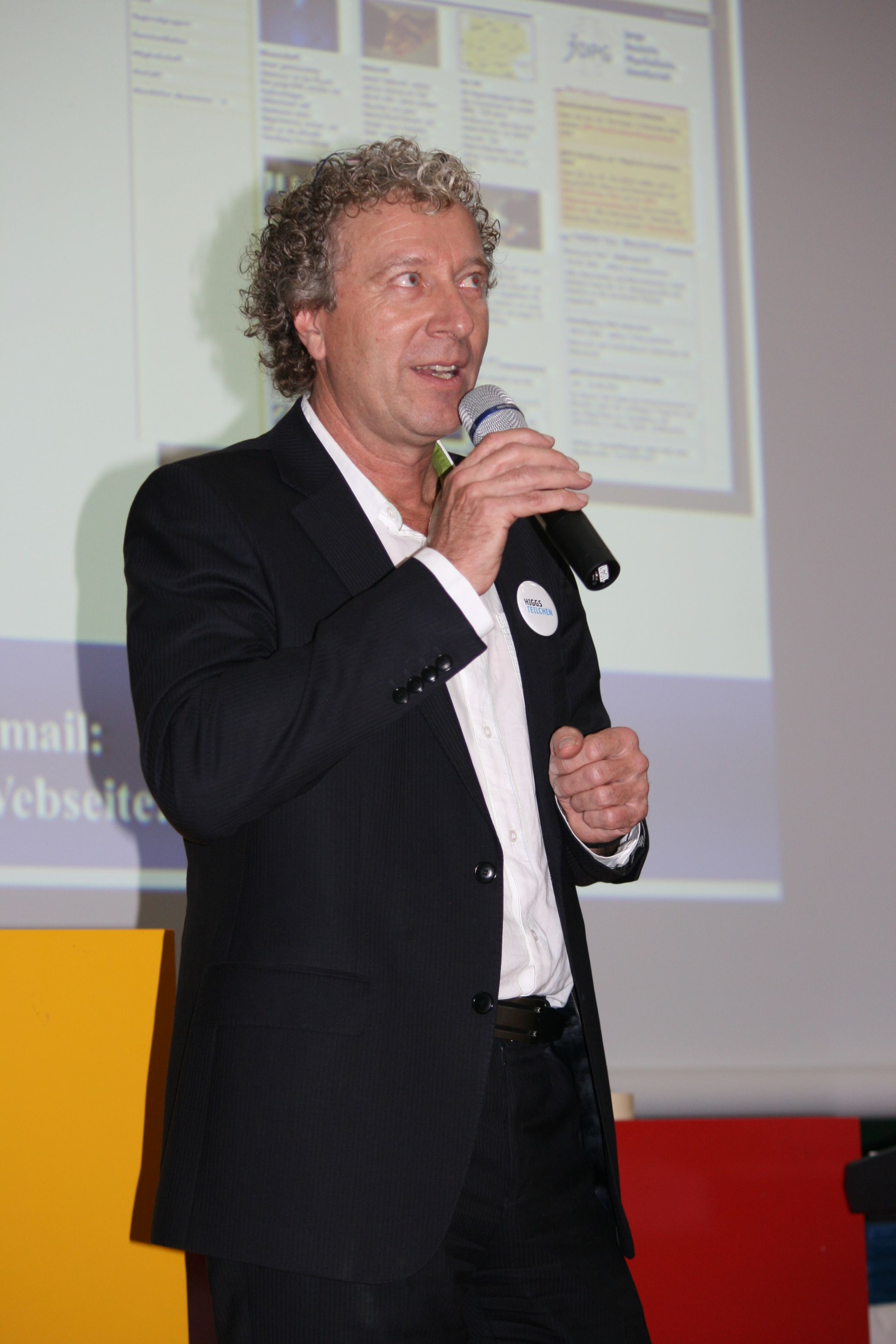Der Festredner, Prof. Dr.  Thomas Naumann vom Deutsches Elektronen-Synchrotron DESY in Zeuthen, erklärt die Jagd nach dem Higgs-Teilchen bei CERN.