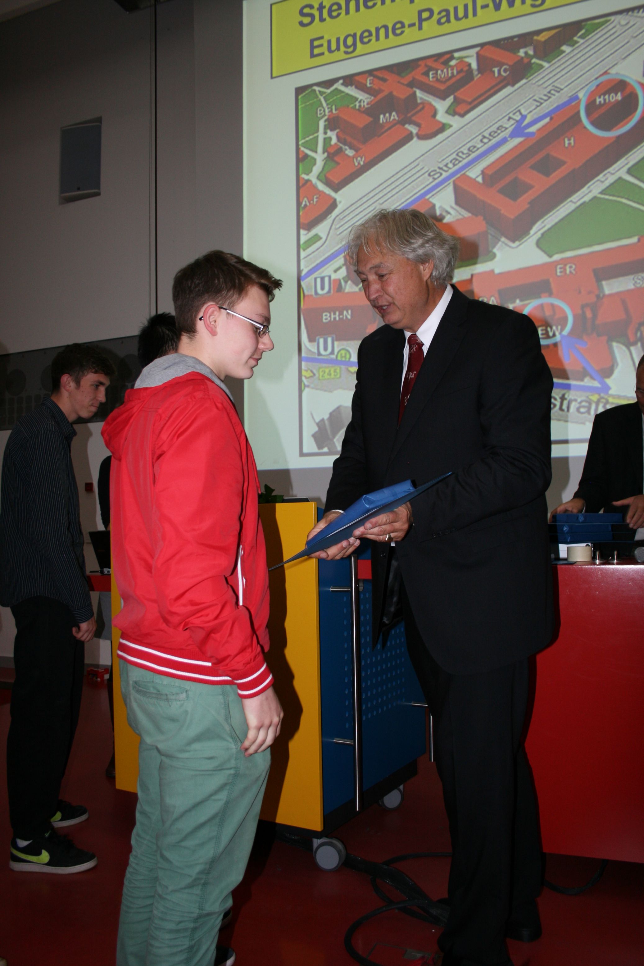 Die Verleihung des Schülerpreises ist wieder erfolgreich abgeschlossen. D. Barthel (links) und der Stellvertretende Vorsitzende der PGzB, Dr. Wolfgang Buck (rechts), können sich enstpannen.