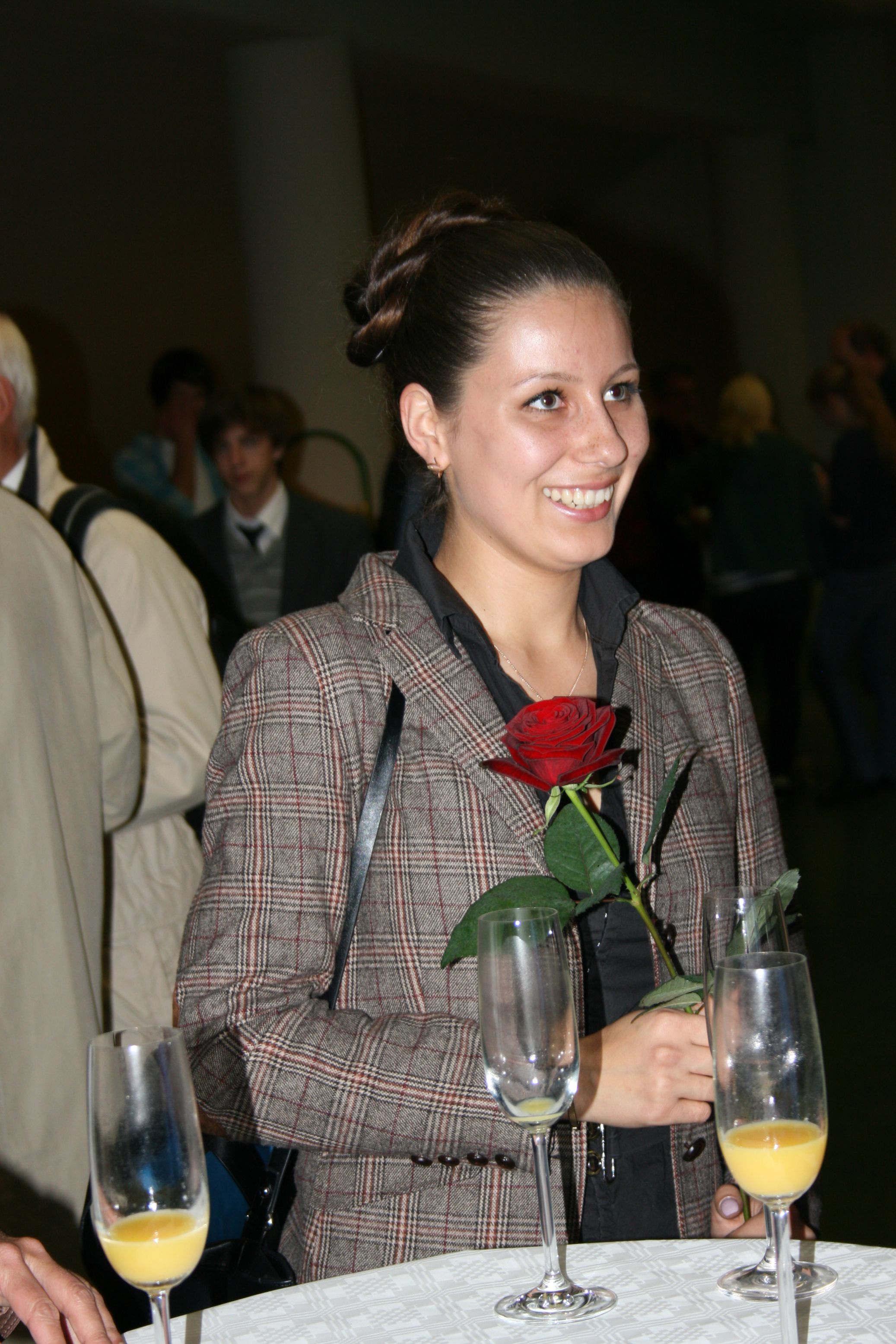 Eine Preisträgerin freut sich ganz besonders über die soeben erhaltene Auszeichung.