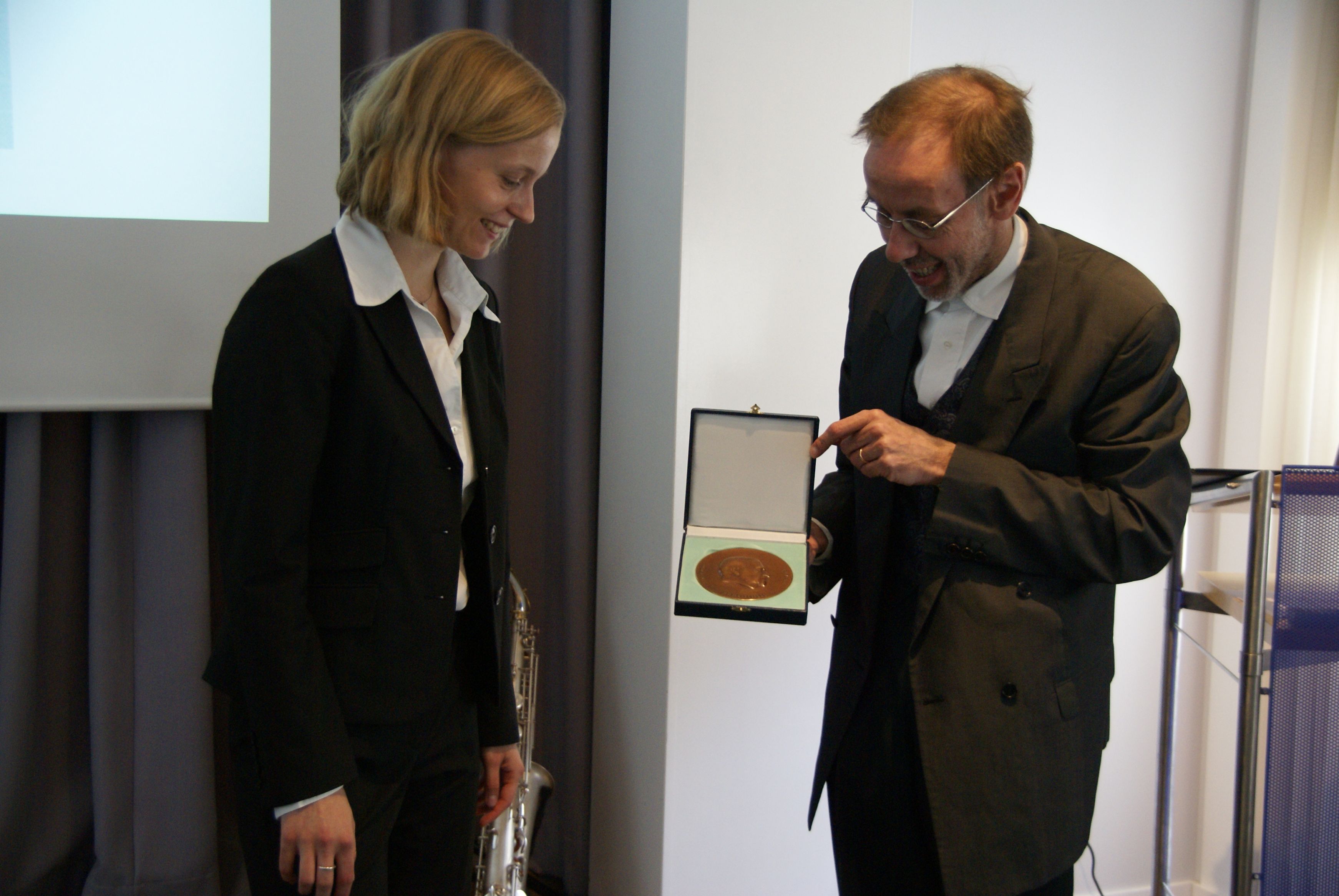 Anschließend wird der Preisträgerin die Karl-Scheel-Medaille vom Vorsitzenden der PGzB überreicht. |