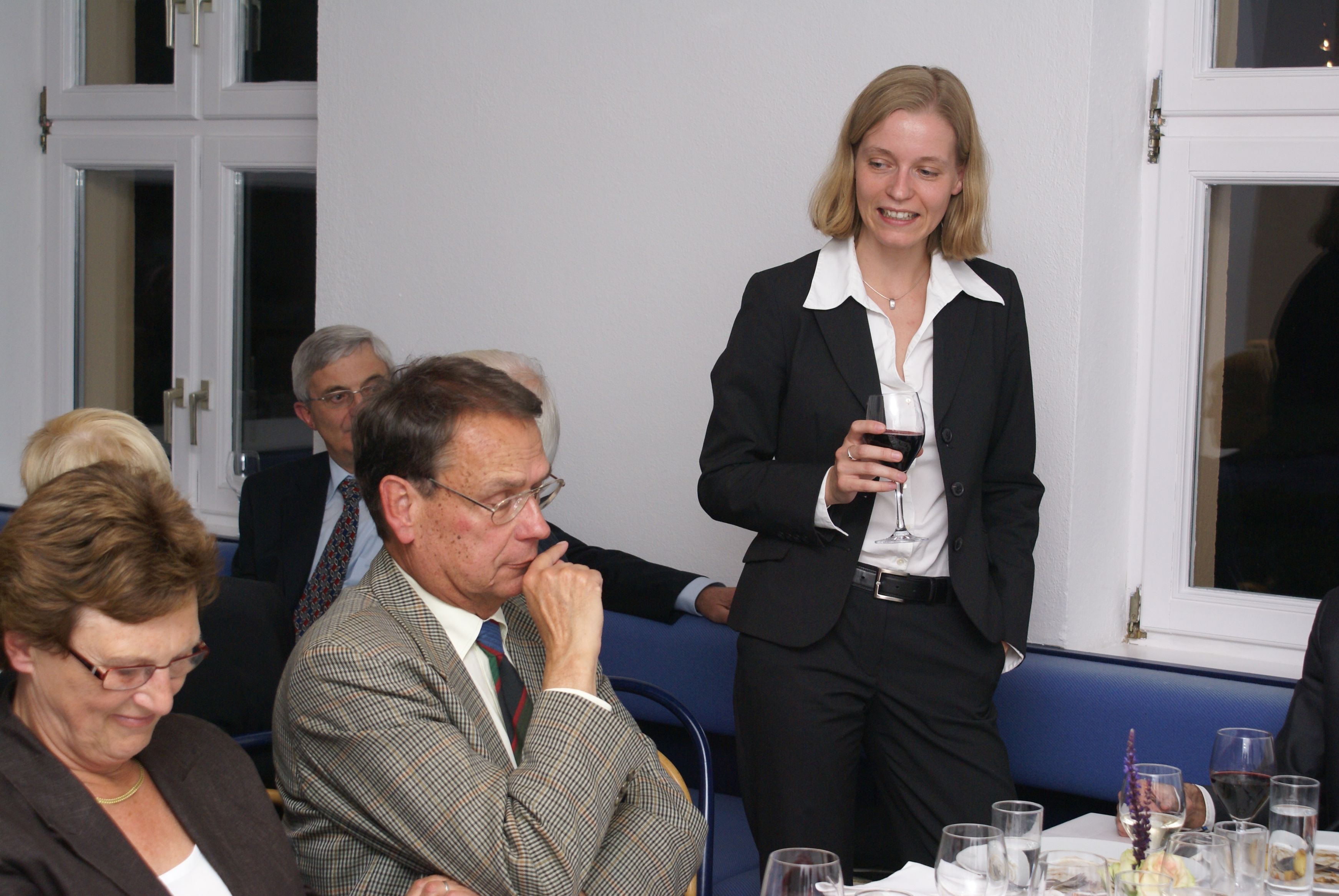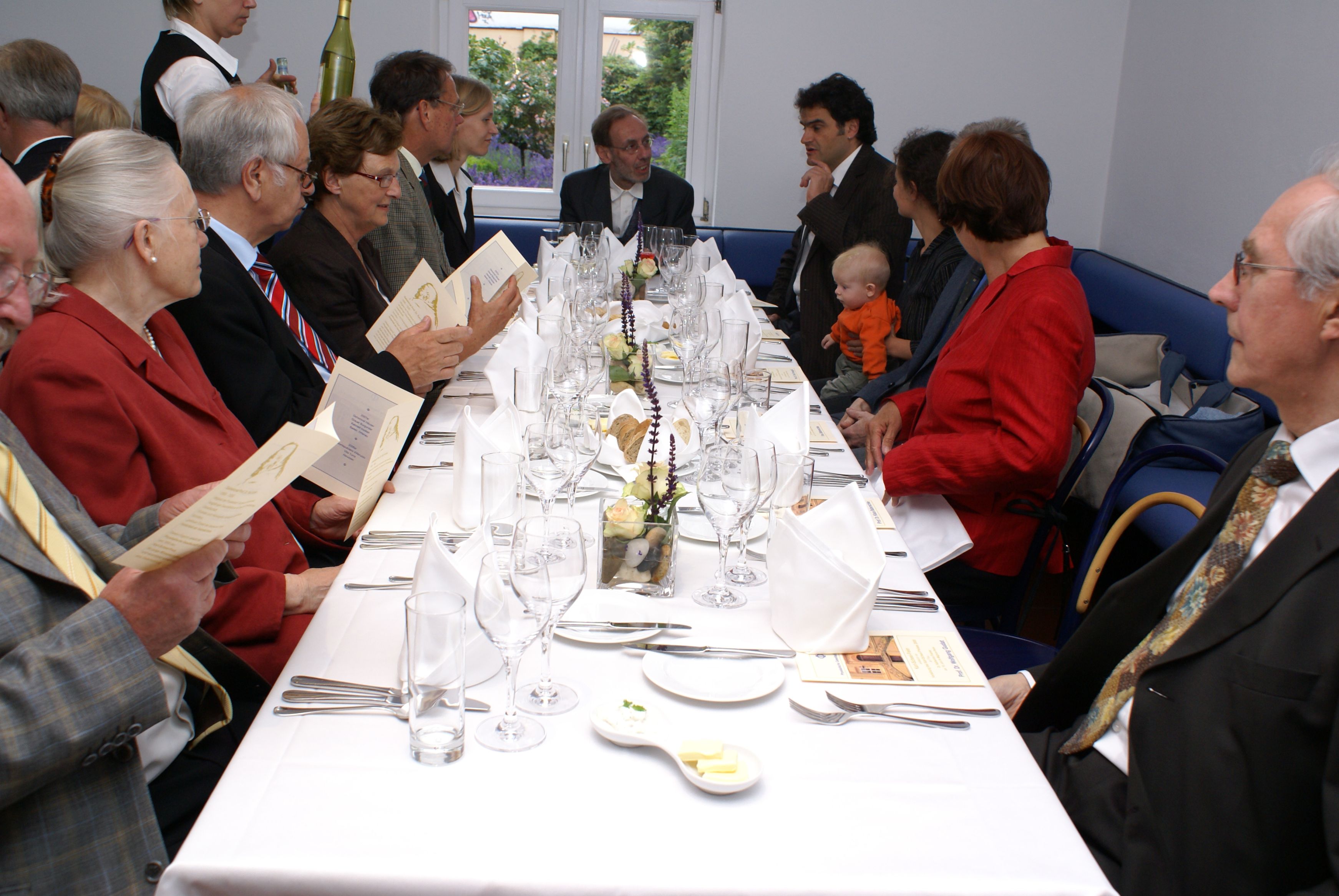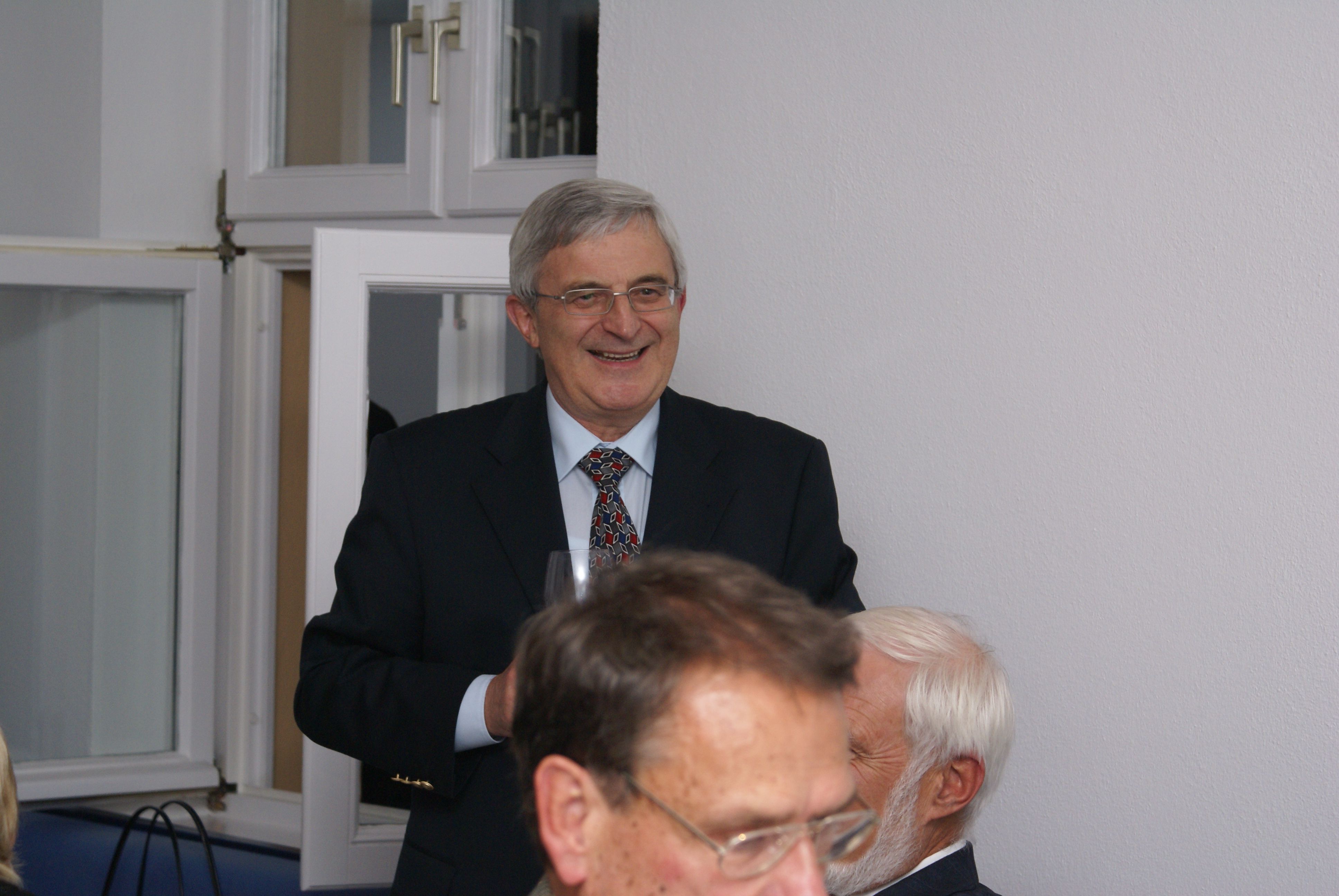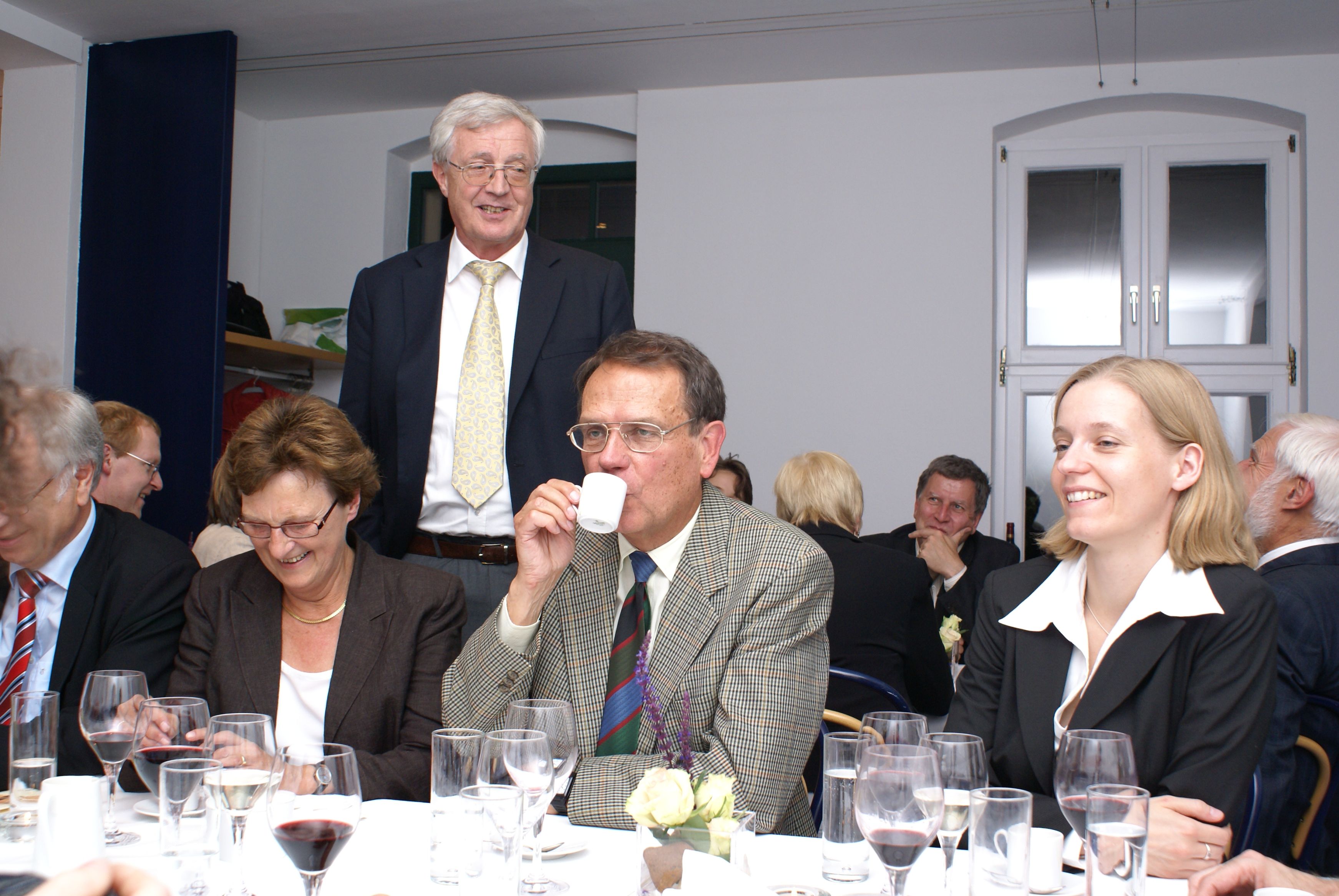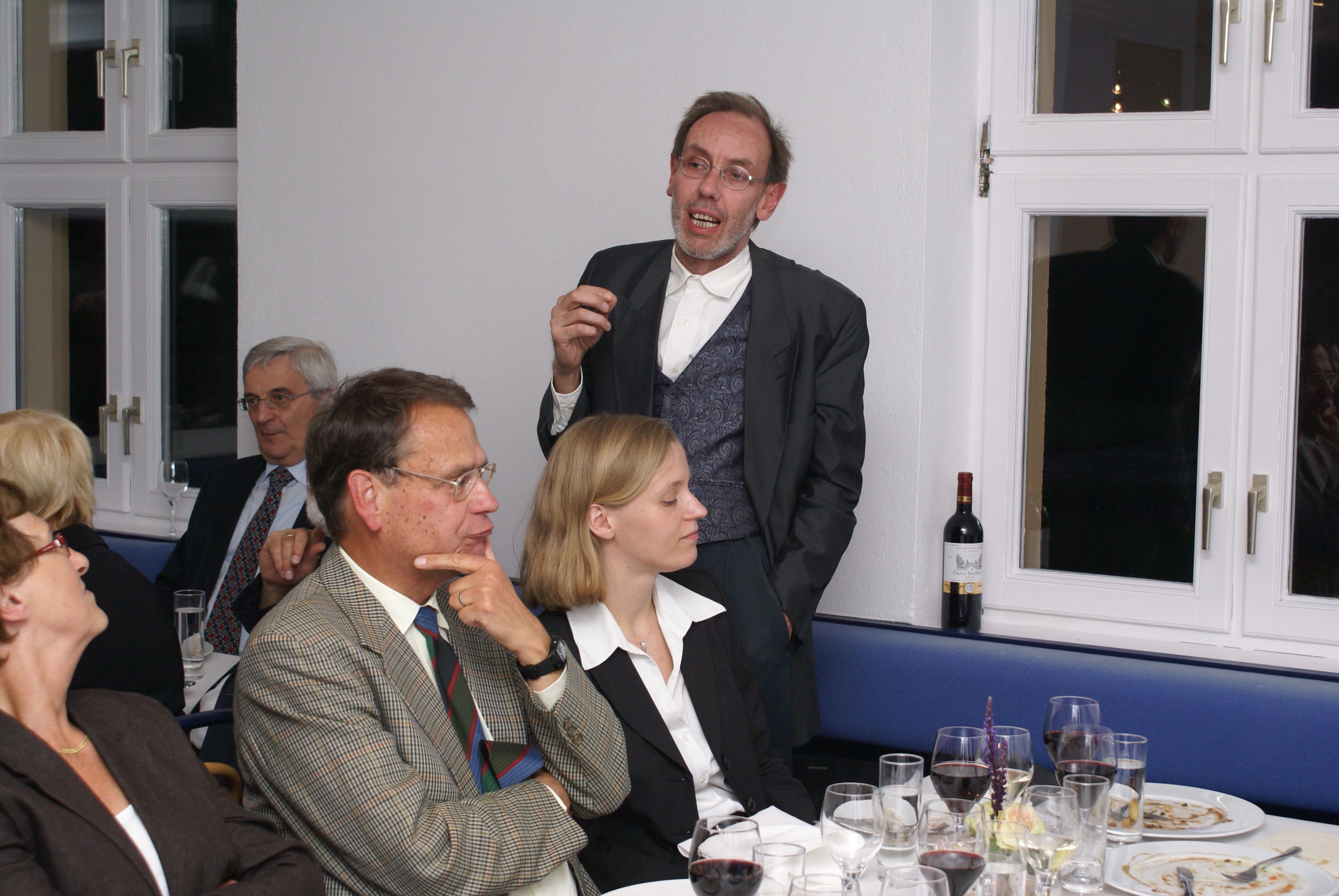 | Prof. Dr. Reinhard Nink (Karl-Scheel-Preisträger 1966, Geschäftsführer der PGzB von 1969 bis 1996 und Vorsitzender der PGzB von 1998 bis 2000) erzählt beim Abendessen aus seinem Schatz der Erinnerungen.