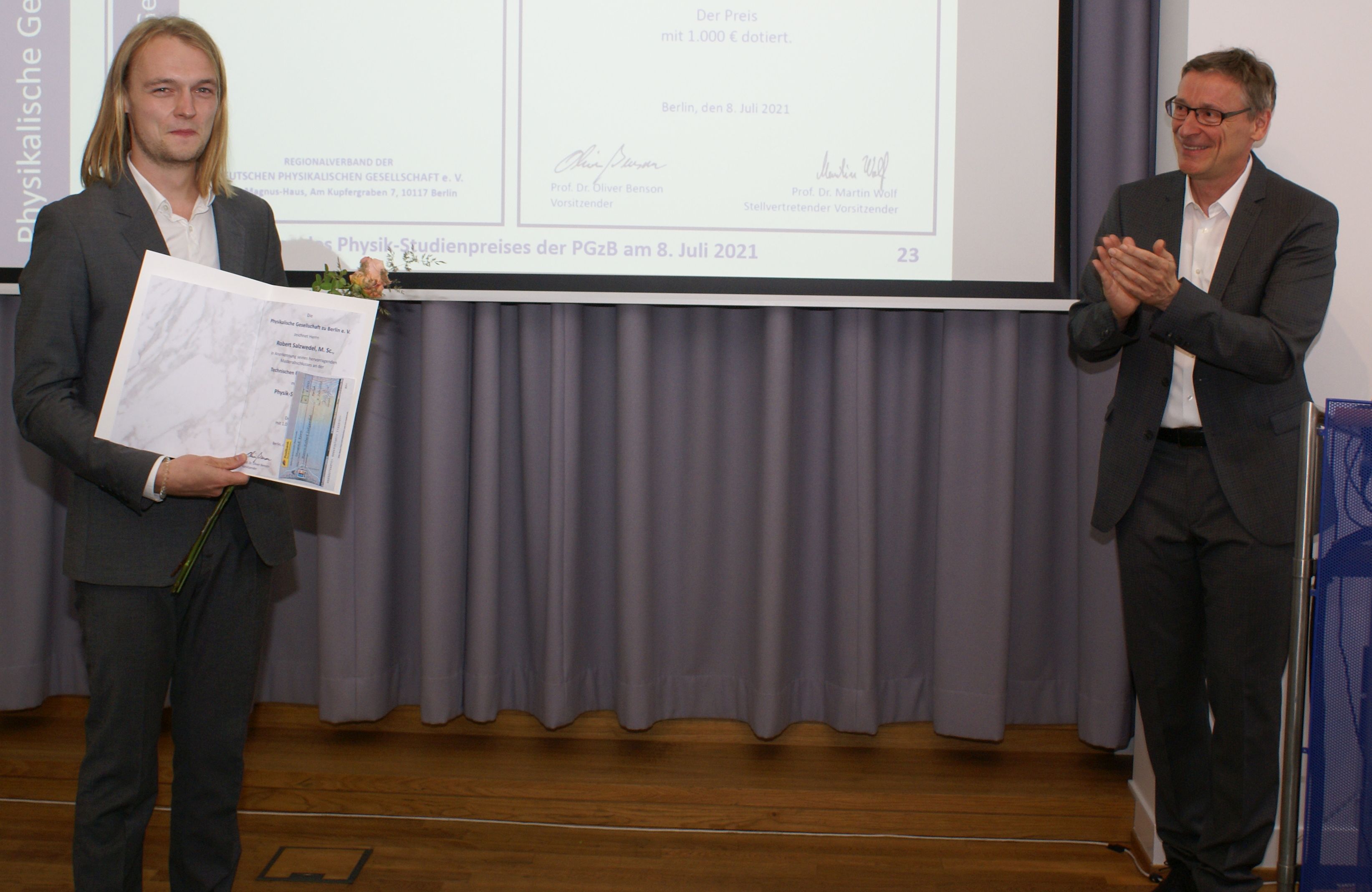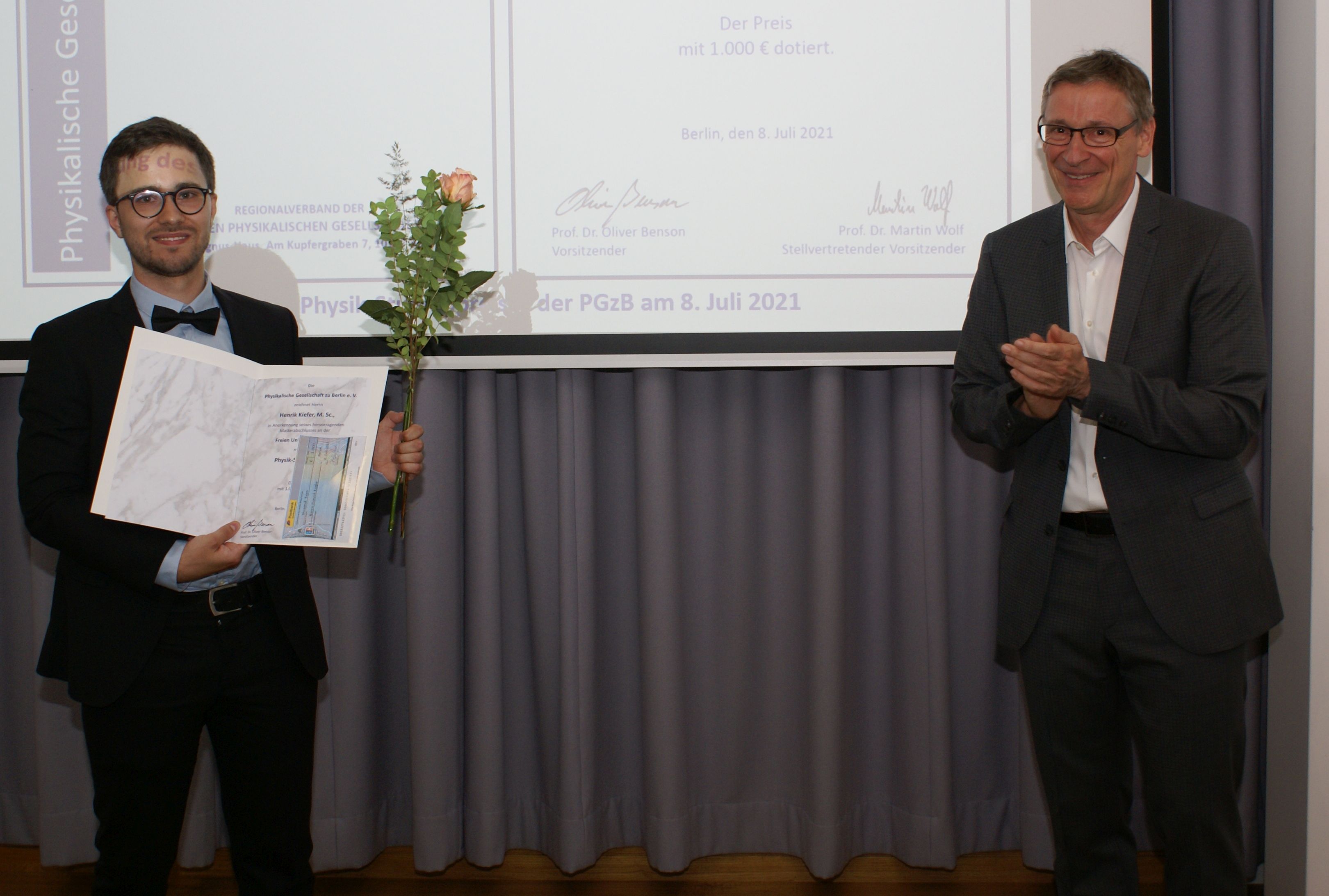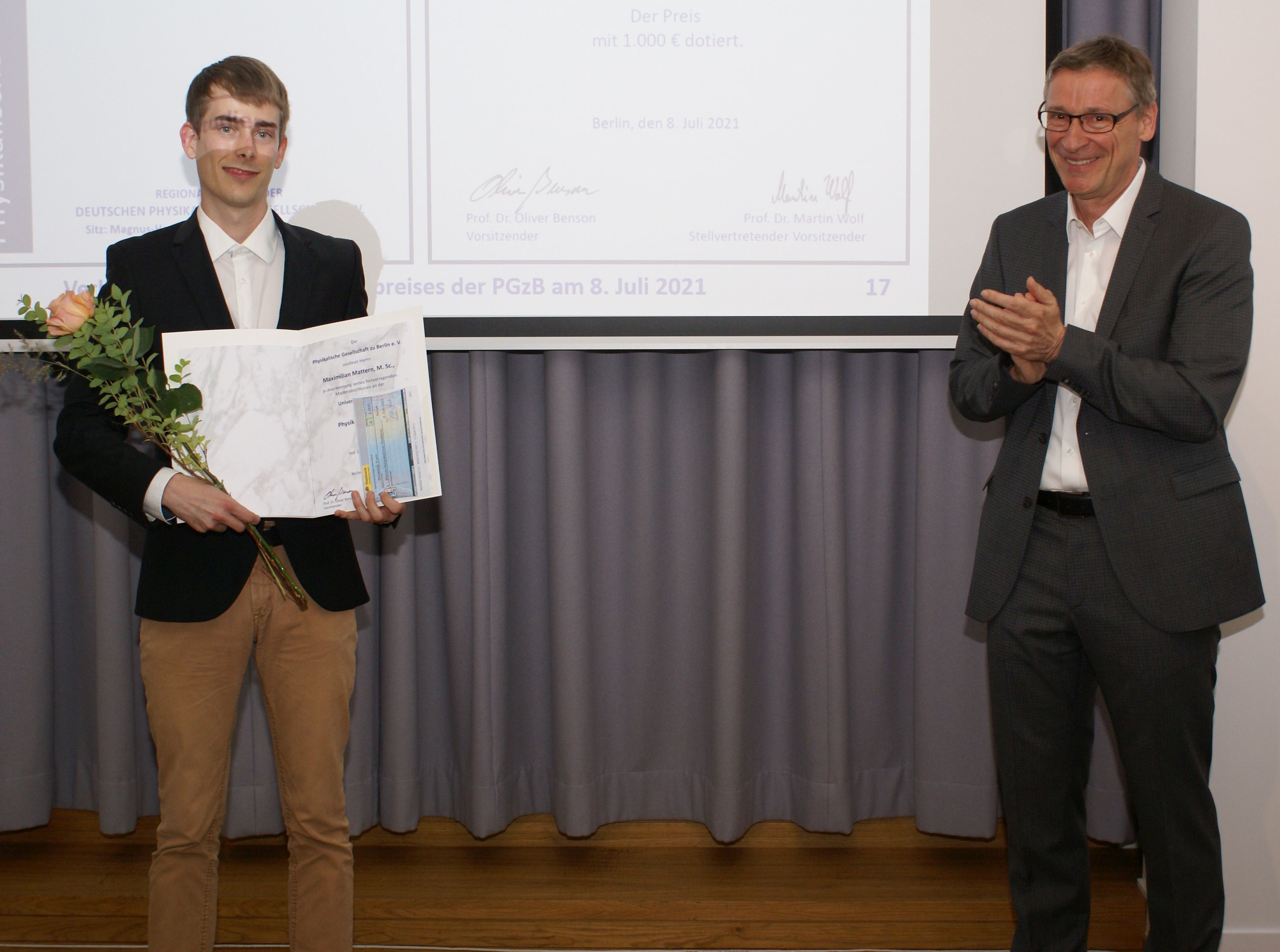 Der Physik-Studienpreis 2021 wird von Herrn Prof. Benson an die