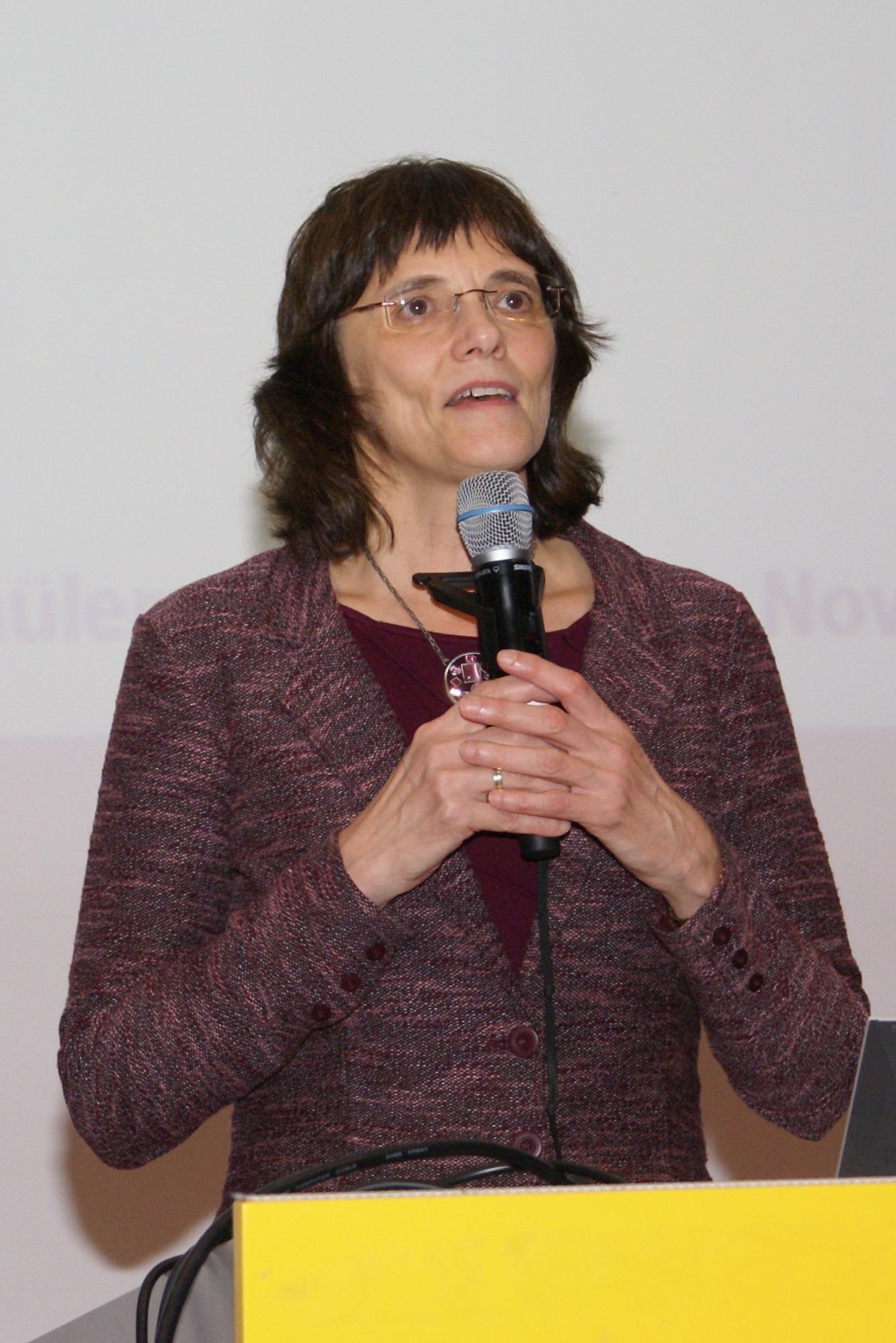 Frau Woggon begrüßt Herrn Dipl.-Math. Dominque Bartel vom Humboldt-Gymnasium in Berlin-Tegel, der 15 Jahre lang die Verleihung des Schülerinnen- und Schülerpreises der PGzB organisiert und durchgeführt hat (zum Vergrößern Bild anklicken).
