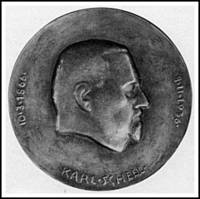 Die Karl-Scheel-Medaille, auf der Voerderseite das Bas-Relief Karl Scheels von Richard Scheibe.