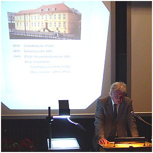 Wolfgang Nolting, Vorsitzender der Physikalischen Gesellschaft zu Berlin, begrüßt die in großer Zahl erschienen Gäste ...  |