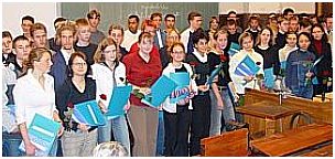 Nach der Überreichung der Preise, bestehend aus Urkunde und Buchspende, stellen sich alle Preisträgerinnen zu “einem” Gruppenfoto auf.  |