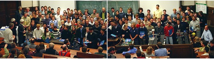 ![]() ![]() | Die Träger des Schülerpreises 2002 der Physikalischen Gesellschaft zu Berlin Der Schülerpreis 2002 wurde im Rahmen eines Festkolloquiums an der Humboldt-Universität zu Berlin verliehen. Der Festredner war Prof. Dr. Lutz-Helmut Schön, Institut für Physik der Humboldt-Universität zu Berlin. Vortragstitel: Warum fällt die Münze nicht einfach um? Weitere Impressionen von der Preisverleihung 2002 Die Preisträger Die 19 Trägerinnen und 97 Träger des Schülerpreises 2002 waren: