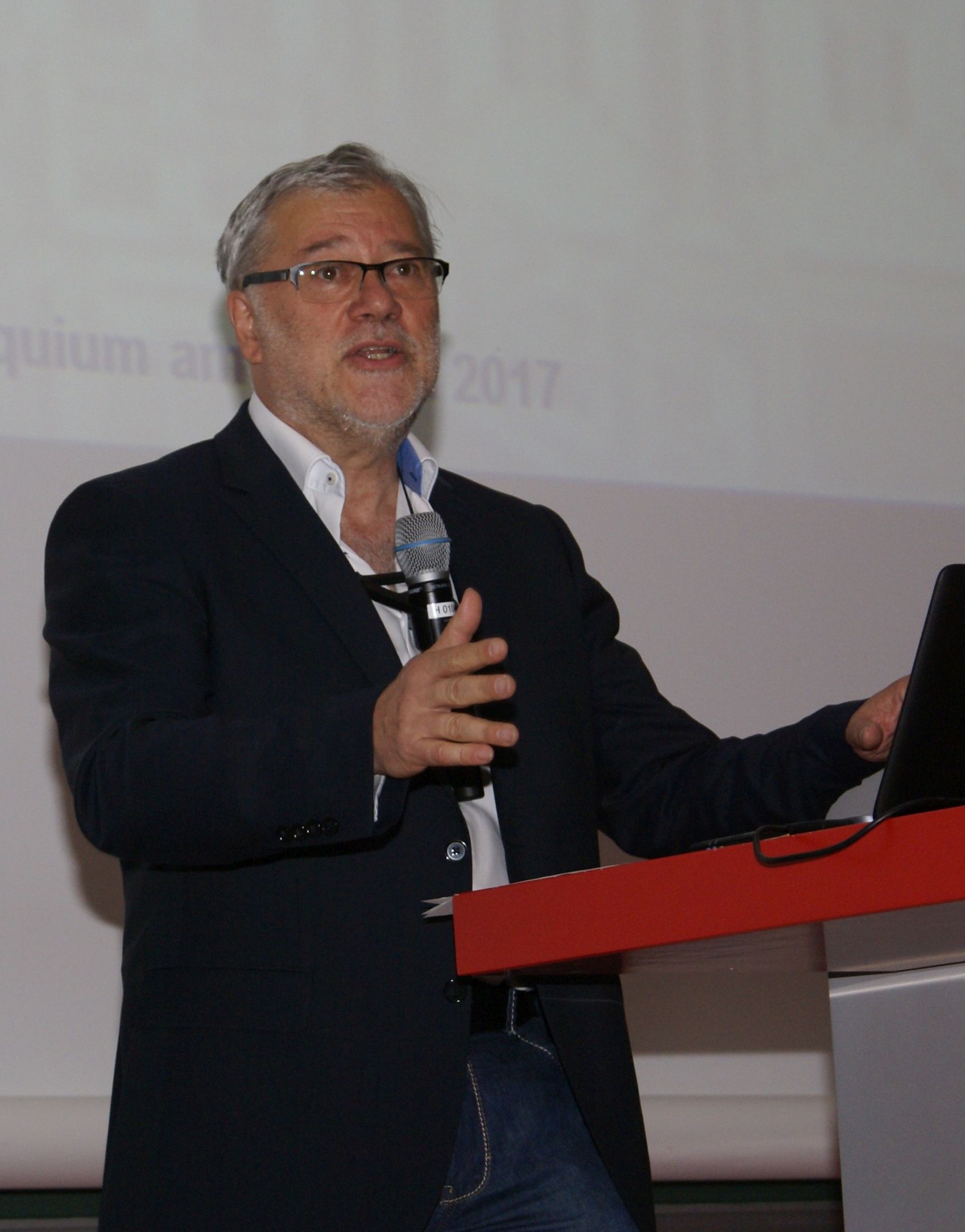 Prof. Dr. Jürgen Kurths, Vorsitzender der Physikalischen Gesellschaft zu Berlin (PGzB), eröffnet das Max-von-Laue-Kolloquium und stellt Herrn Schellnhuber vor