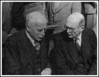 Seit Ihrer Neugründung veranstaltete die Physikalische Gesellschaft wiederum etwa alle 14 Tage wissenschaftliche Sitzungen und öffentliche Vorträge (wegen der Finanzierung der Reisen häufig in Zusammenarbeit mit dem Außeninstitut der TUB) mit Gästen aus allen Teilen Deutschlands und seit 1952 wieder in verstärktem Maße mit Vortragenden aus dem Ausland. Unsere ersten Gäste waren: Sir Charles Darwin (Cambridge), Lise Meitner (Stockholm) und James Franck (Chicago). Sehr bald wurden auch größere Veranstaltungen in Zusammenarbeit mit anderen Berliner Institutionen durchgeführt, z. B. die von Jean D'Ans initiierte "Berliner Woche der exakten Naturwissenschaften" vom 24. bis 30. Mai 1951, gemeinsam mit den beiden Berliner Universitäten, der Deutschen Forschungshochschule Berlin-Dahlem und dem Ortsverband Berlin der Gesellschaft Deutscher Chemiker. An den ersten drei Tagen dominierte die Chemie, die letzten drei waren der Physik gewidmet. Zu den sechzig Vorträgen, darunter zehn aus dem Ausland (Schweiz, Frankreich, England, USA und Brasilien), kamen fast 2500 Teilnehmer, davon ca. 1000 aus der DDR. Bei den Höhepunkten der Tagung, z. B. dem Festakt am Sonntag mit einem Vortrag von Carl Ramsauer über "Berlin und die exakten Naturwissenschaften" [2], in welchem er die Entwicklung seit 1700 - insbesondere die große Zeit der Physik und Chemie von 1900 bis 1930 - sehr lebendig schilderte, war der große Hörsaal des Physikgebäudes (1000 Plätze, damals der größte Berlins) hoffnungslos überfüllt. Das galt auch für die Vorträge von Otto Hahn über "Beispiele internationaler Zusammenarbeit" und von Erwin Müller, der das Bild des Leuchtschirmes eines Feldelektronen-Mikroskops an die Tafelwand projizierte, so daß die ca. 1400 Anwesenden die Bewegung einzelner Atome auf der Spitze des Wolframdrahtes erkennen konnten. Auch die Festrede auf dem Bankett, die der 91jährige Friedrich Schmidt-Ott, jahrzehntelanger Förderer und Organisator der Wissenschaften (letzter Preußischer Staatsminister für die geistlichen und die Unterrichtsangelegenheiten (1918), Stellvertretender Vorsitzender der Kaiser-Wilhelm-GeselIschaft von 1911 bis 1930, Vorsitzender bis 1933), Gründer der Notgemeinschaft der Deutschen Wissenschaft und deren Vorsitzender bis 1933), über die Forschung und Forschungsförderung in Berlin während der letzten sechzig Jahre hielt, wird jedem in Erinnerung bleiben, der dabei war.